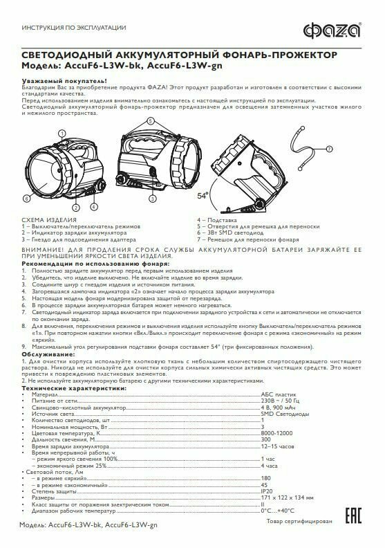 Аккумуляторный фонарь ФАZА AccuF6-L3W-bk интересное: