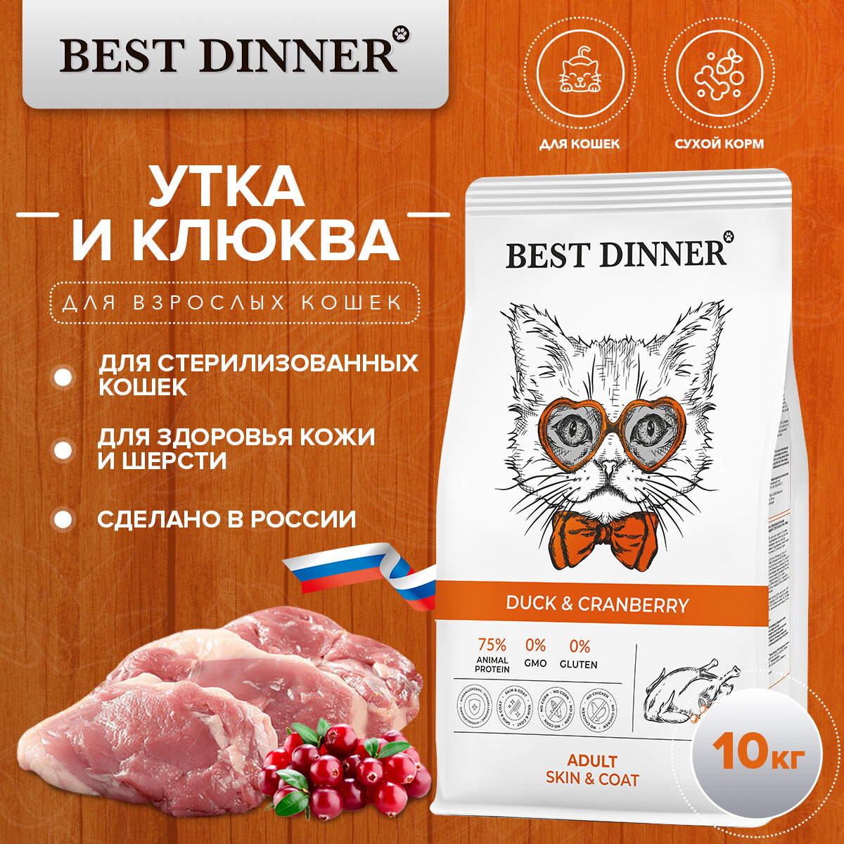 Корм сухой Best Dinner для кошек Duck & Cranberry с уткой и клюквой для здоровья кожи и шерсти 10 кг