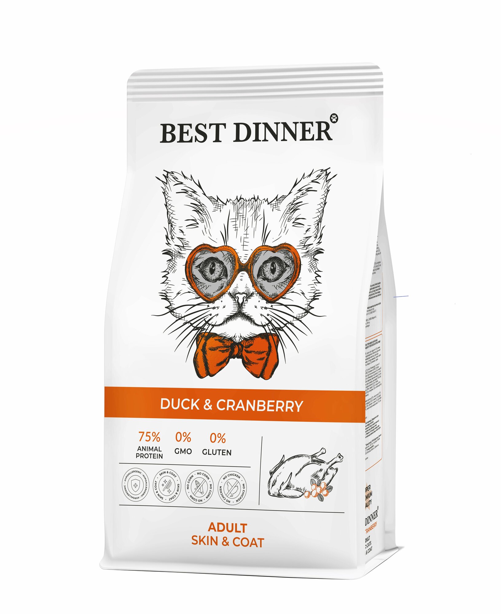 BEST DINNER ADULT SKIN & COAT DUCK & CRANBERRY для взрослых кошек с чувствительной кожей и шерстью с уткой и клюквой (1,5 + 1,5 кг)