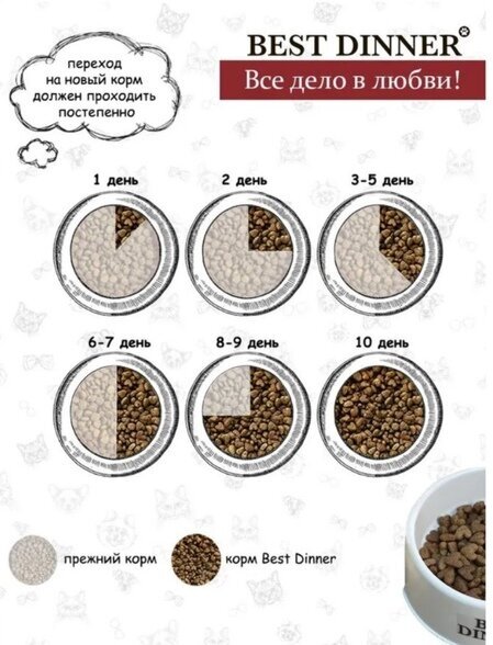 | Дозировка | - вес кошки 2 кг - 40-45г - вес кошки 3 кг - 55-65г - вес кошки 4 кг - 75-85г - вес кошки 5 кг - 90-100г - вес кошки 6 кг - 95-105г - вес кошки 7 кг - 100г |
