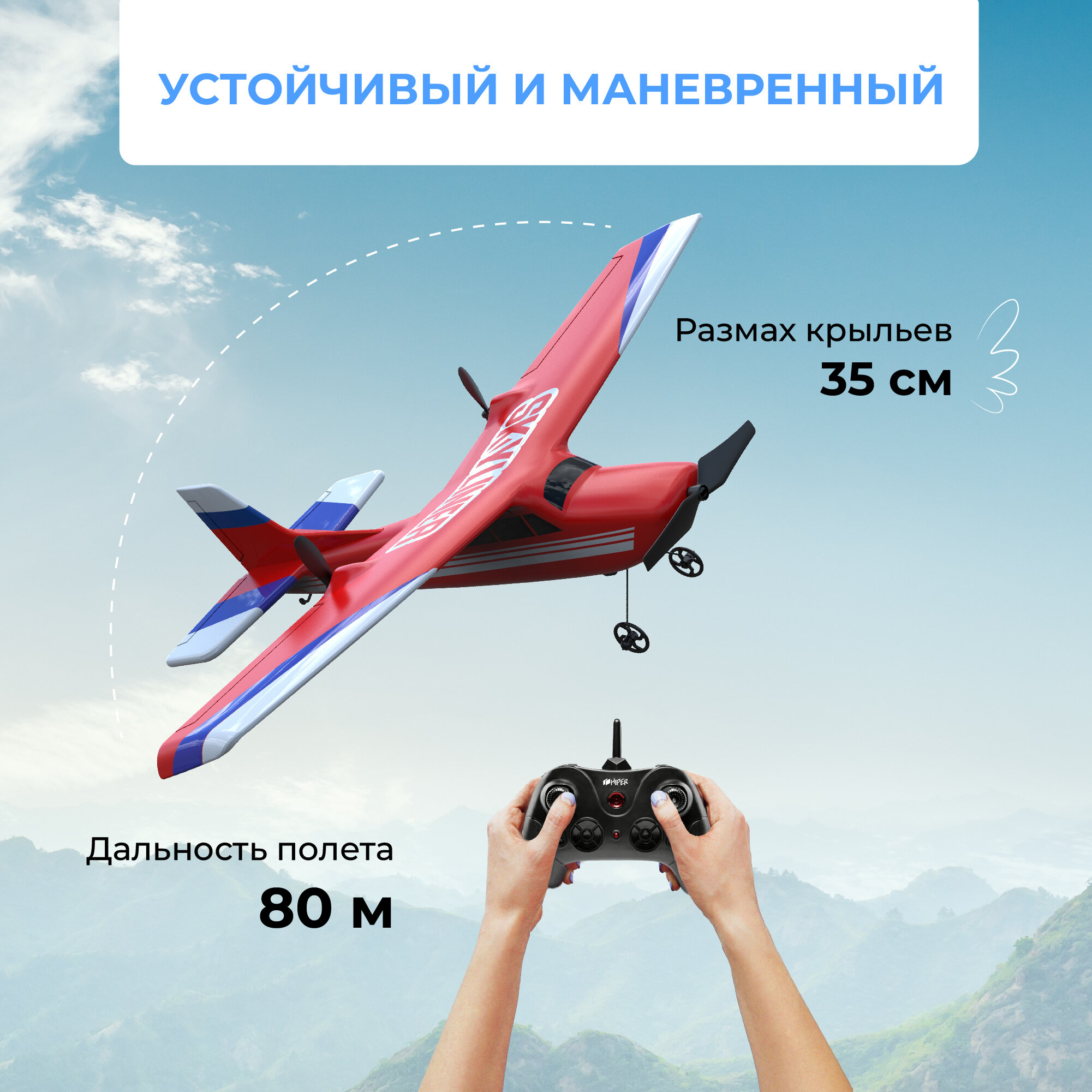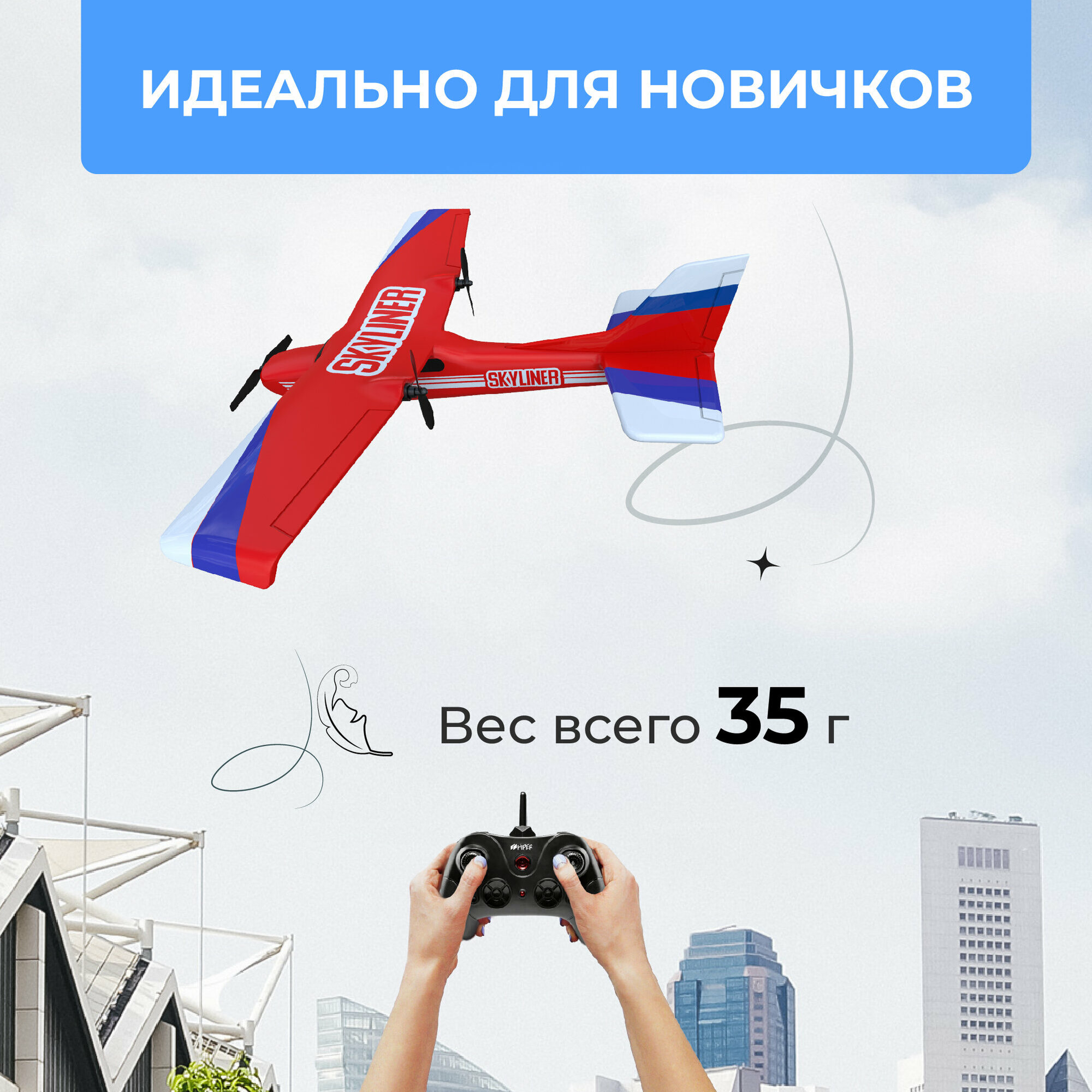 Самолет на радиоуправлении HIPER SKYLINER HPT-0001 идеальная модель для новичков, легкий и ударопрочный, готовый к полету