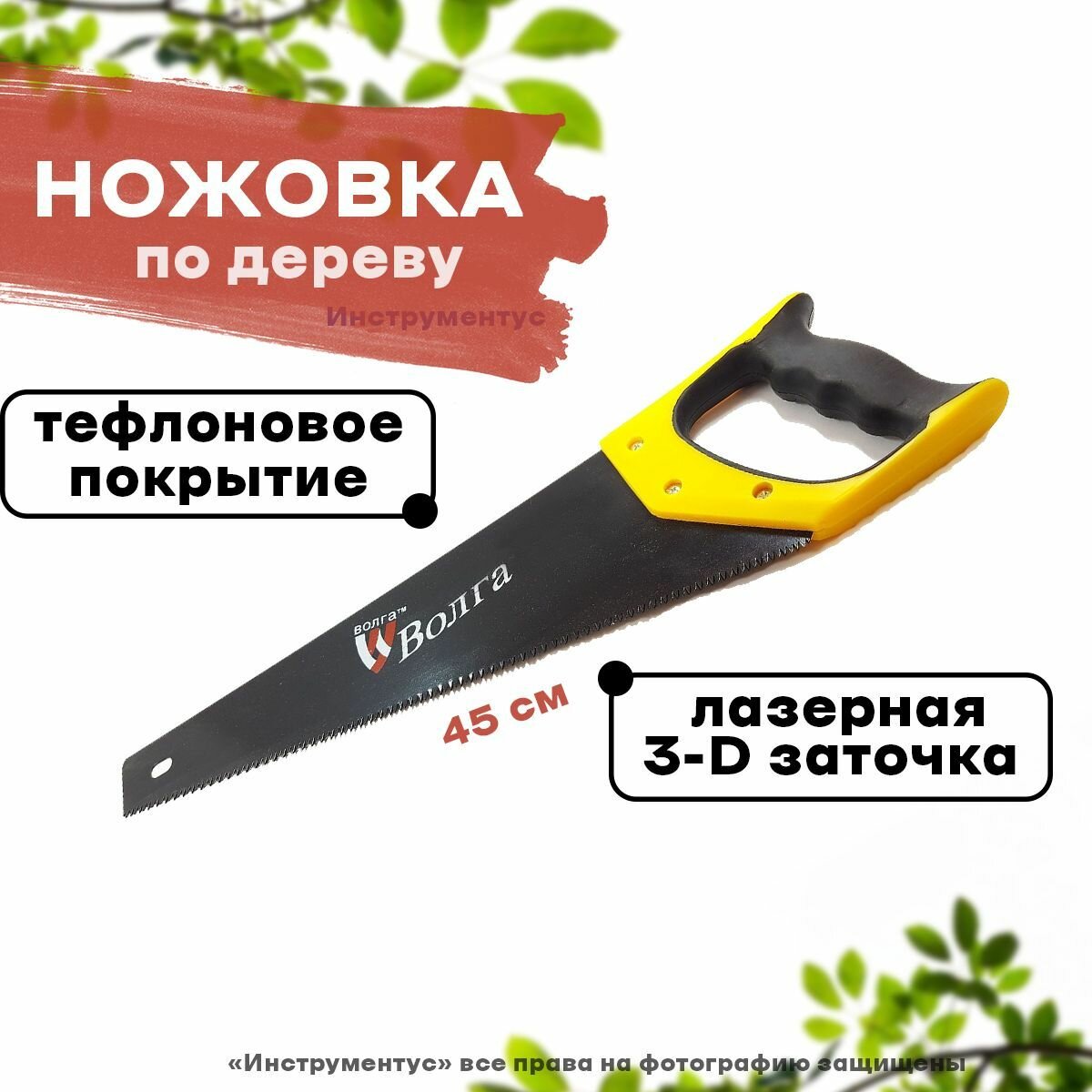 Ножовка по дереву 450 мм прорезиненная ручка (3D-заточка, каленный зуб)