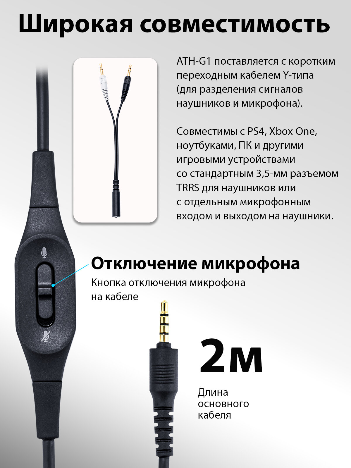 Наушники Audio-Technica ATH-G1, с микрофоном, проводные 1937593 80000808