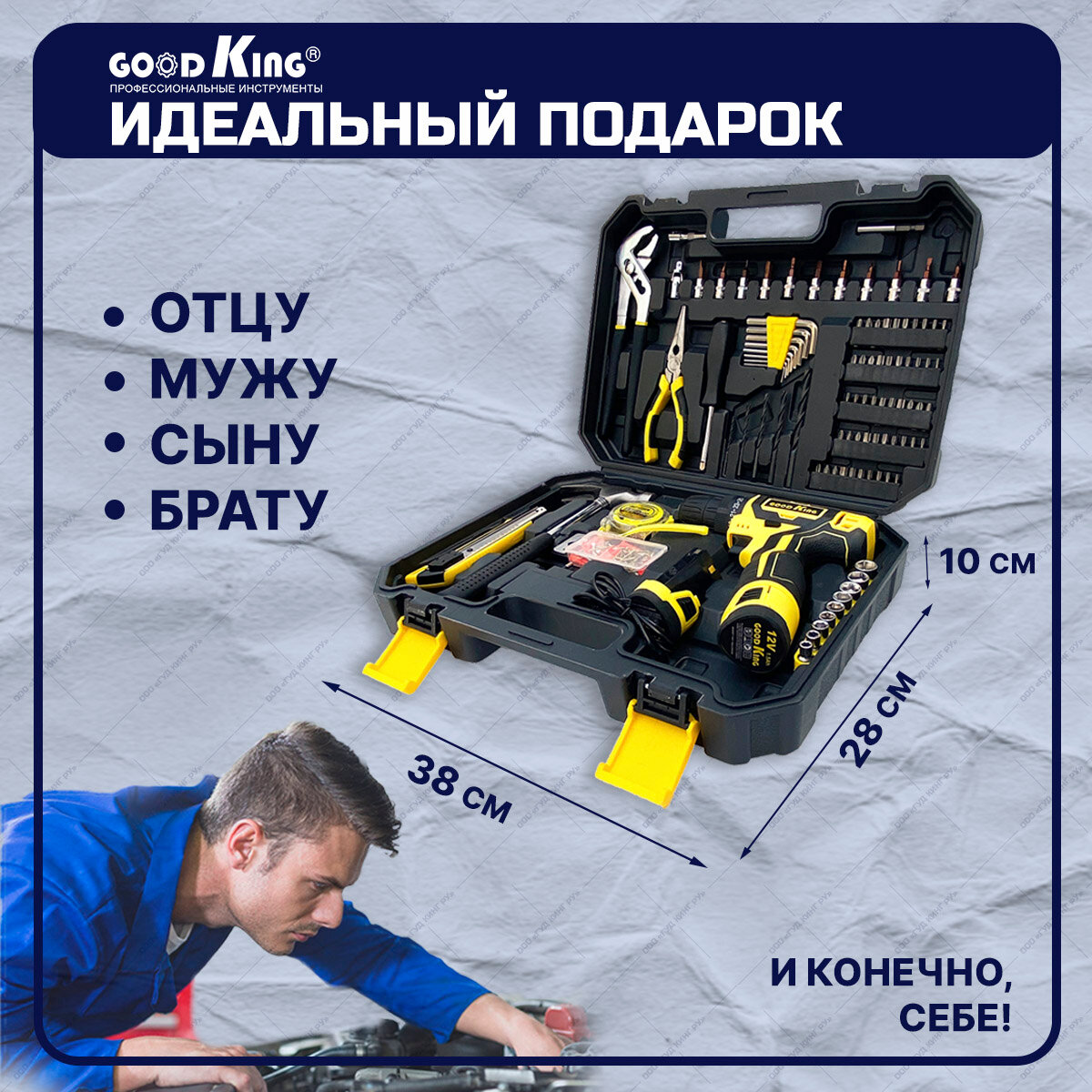 Аккумуляторная дрель-шуруповерт GOODKING EC-1202195 195 предметов 2АКБ 12В. 20Нм. 1.5Ач набор инструментов интересное: