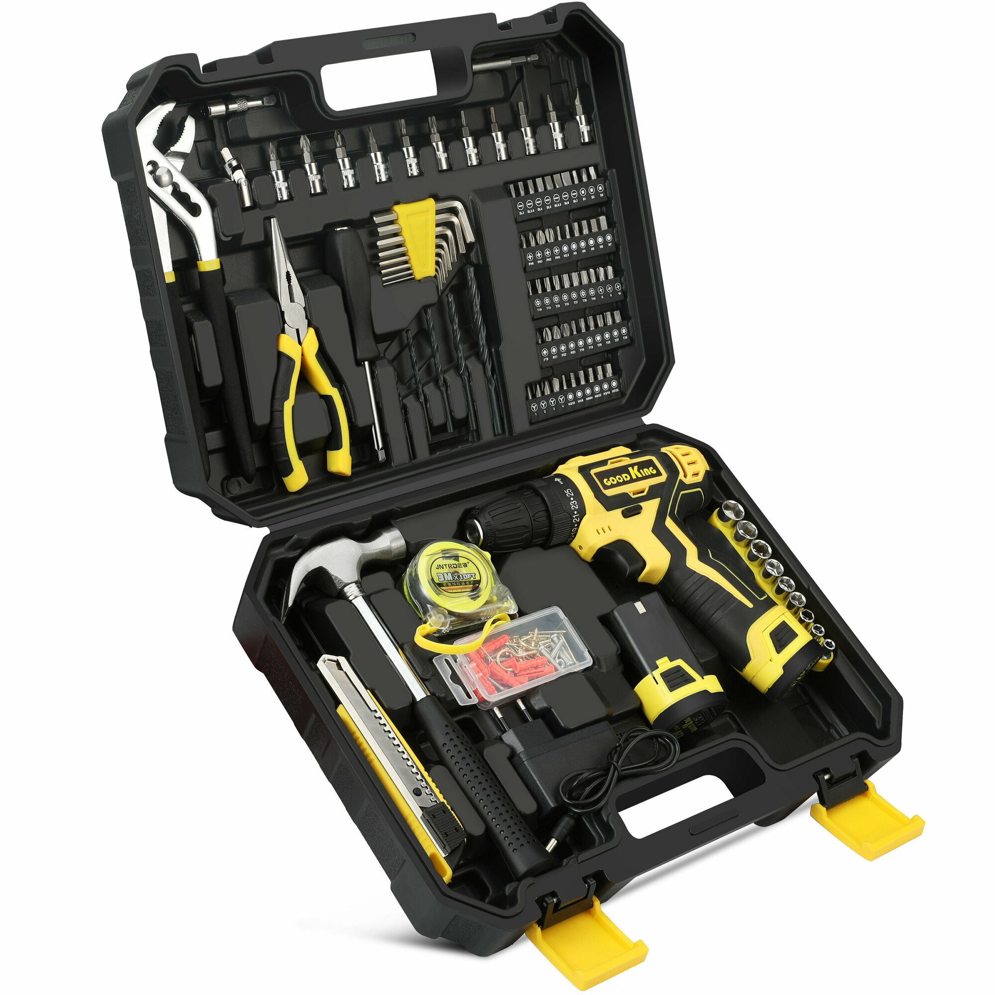 Набор ручных инструментов с аккумуляторной дрелью-шуруповертом Goodking Ec-1202195, 196 предметов с .