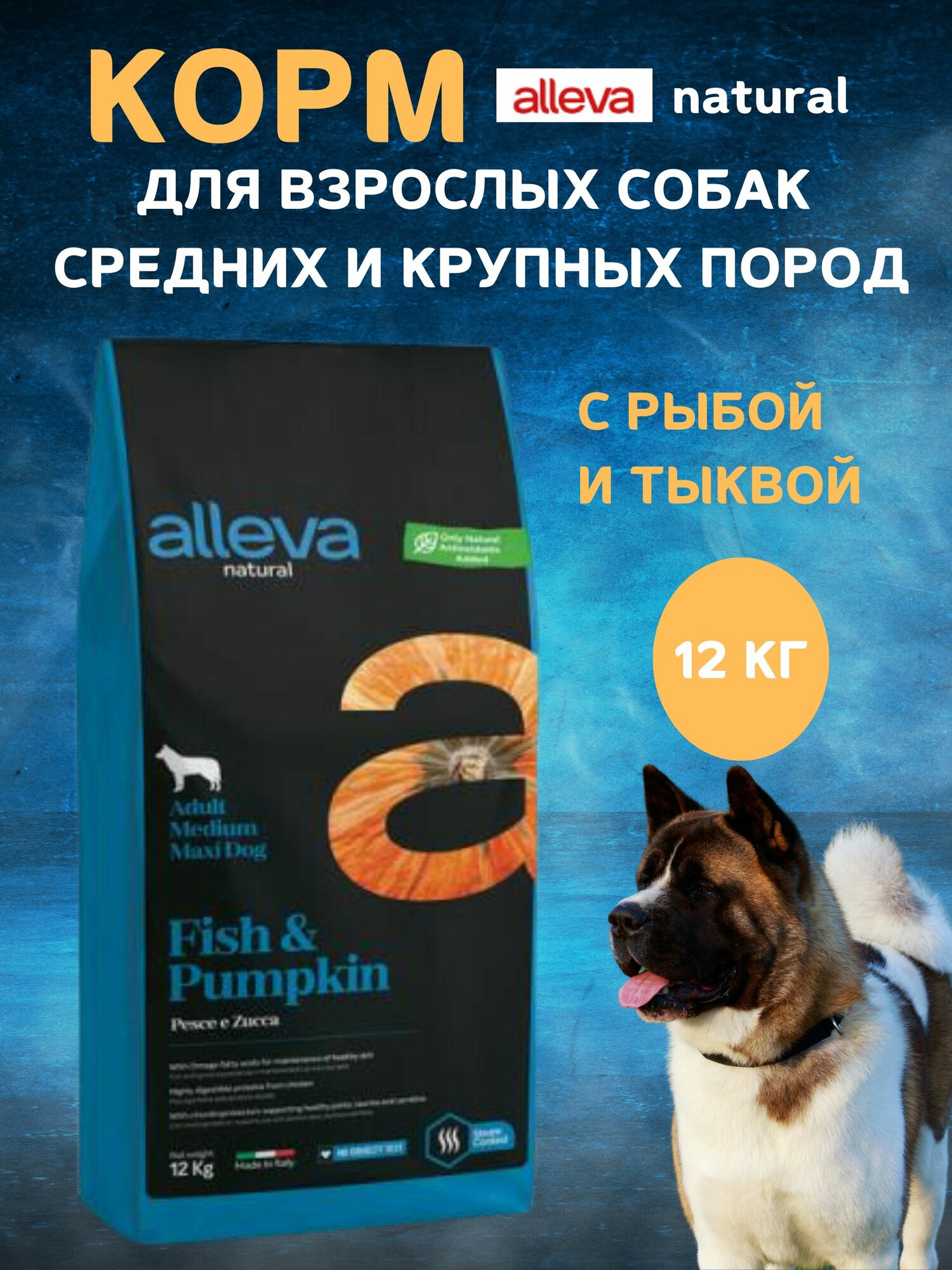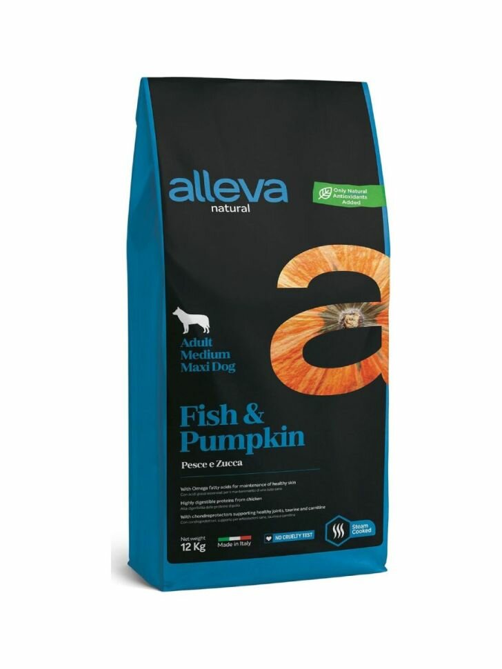 ALLEVA NATURAL ADULT DOG MEDIUM/MAXI FISH & PUMPKIN низкозерновой для взрослых собак средних и крупных пород с рыбой и тыквой (12 кг)