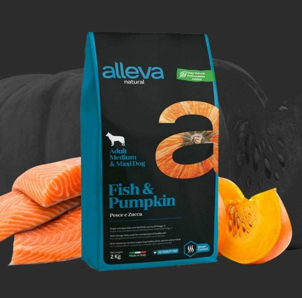 ALLEVA NATURAL DOG для собак Adult Fish Pumpkin MediumMaxi взрослых с рыбой и тыквой 2кг 2103