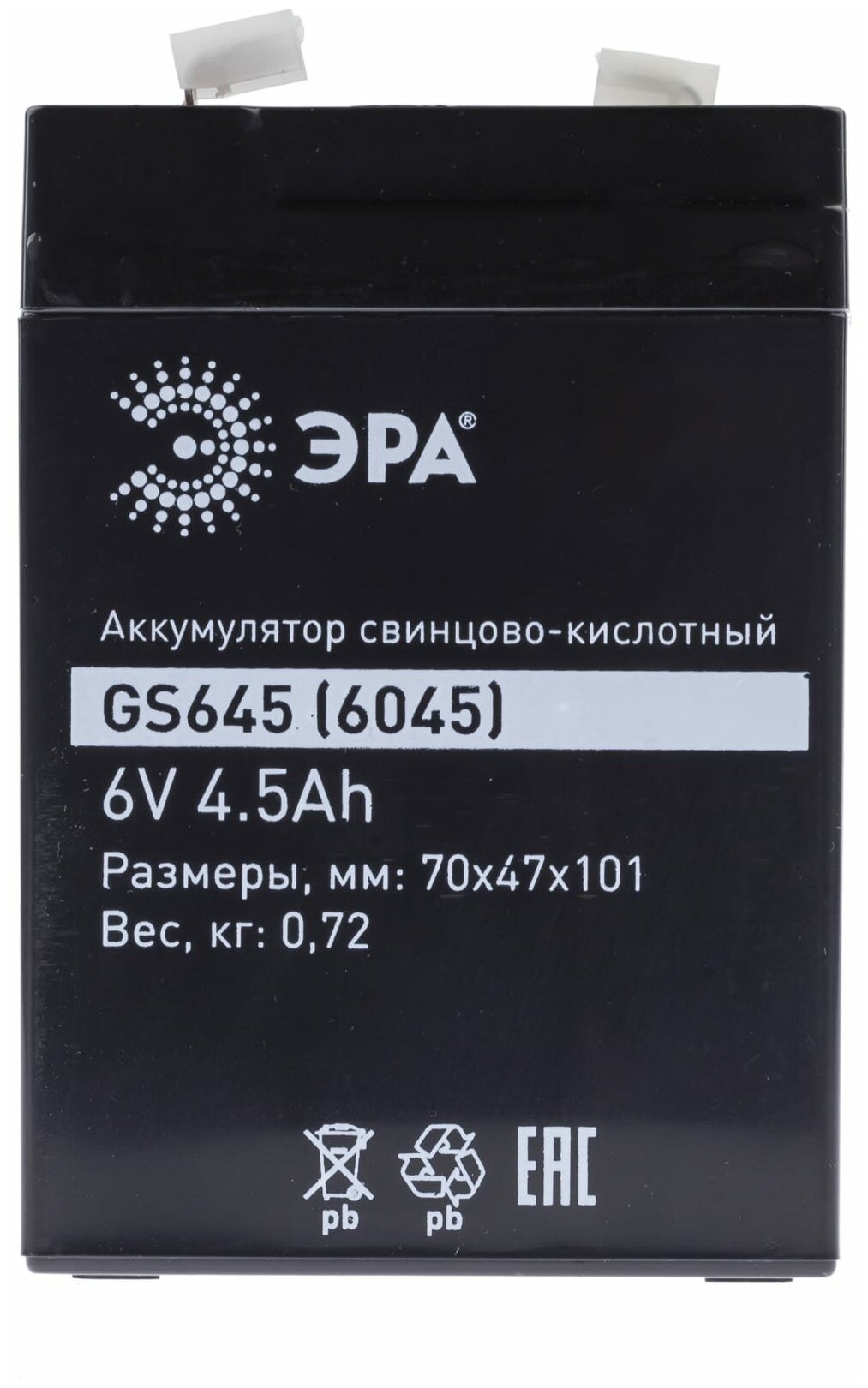 Аккумулятор ЭРА GS645 (Cвинцово-кислотный 6V 4,5)