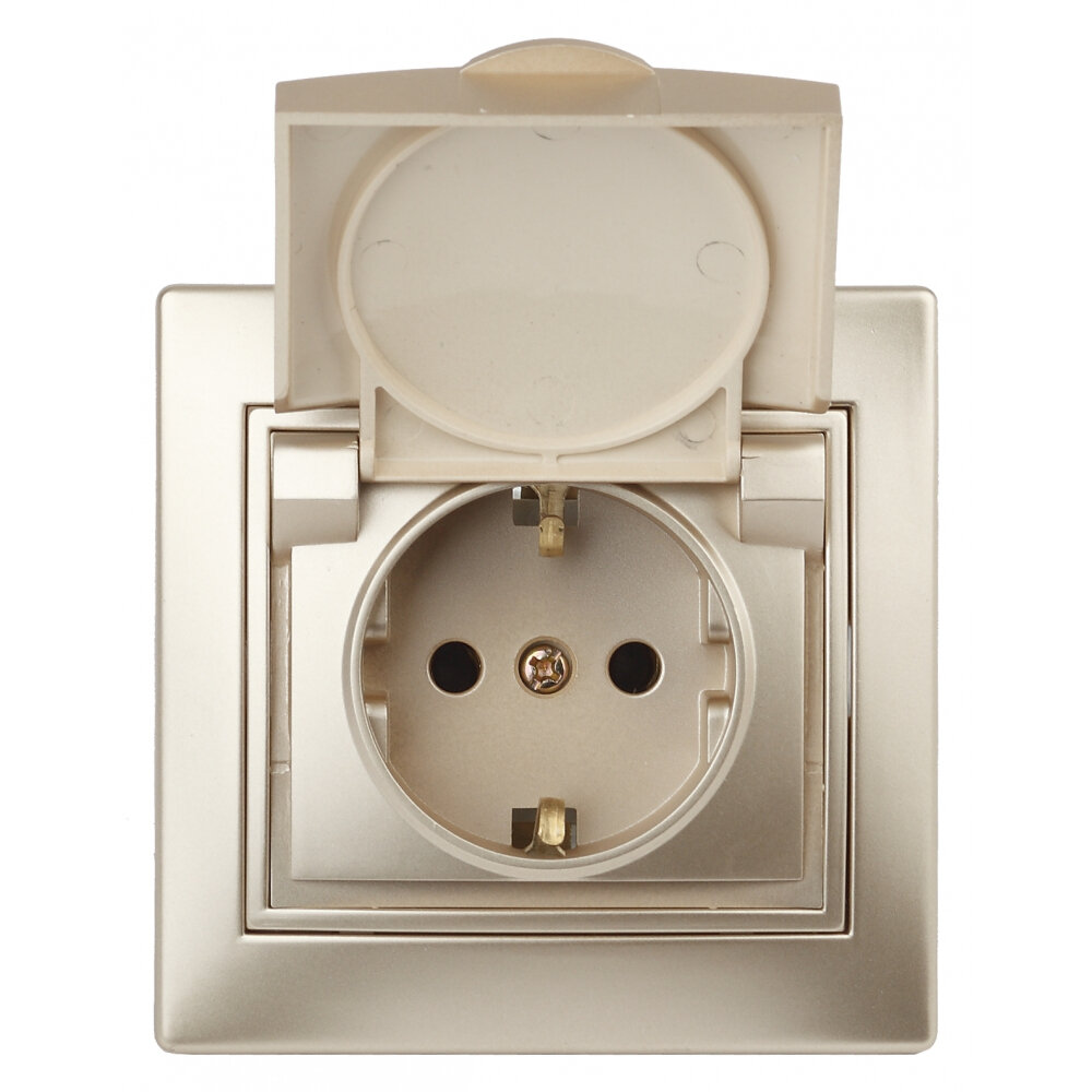 Купить Розетка Intro Plano 1-203-04 с заземлением с крышкой со шторками скрытой установки 16А 250В шампань