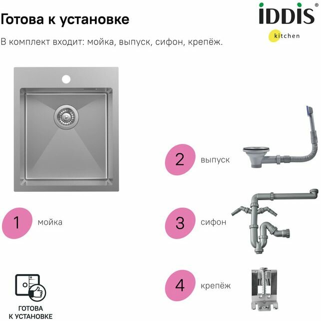 СохранитьМойка Iddis Haze нержавеющая сталь сатин 430х510 (HAZ43S0i77) интересное:
