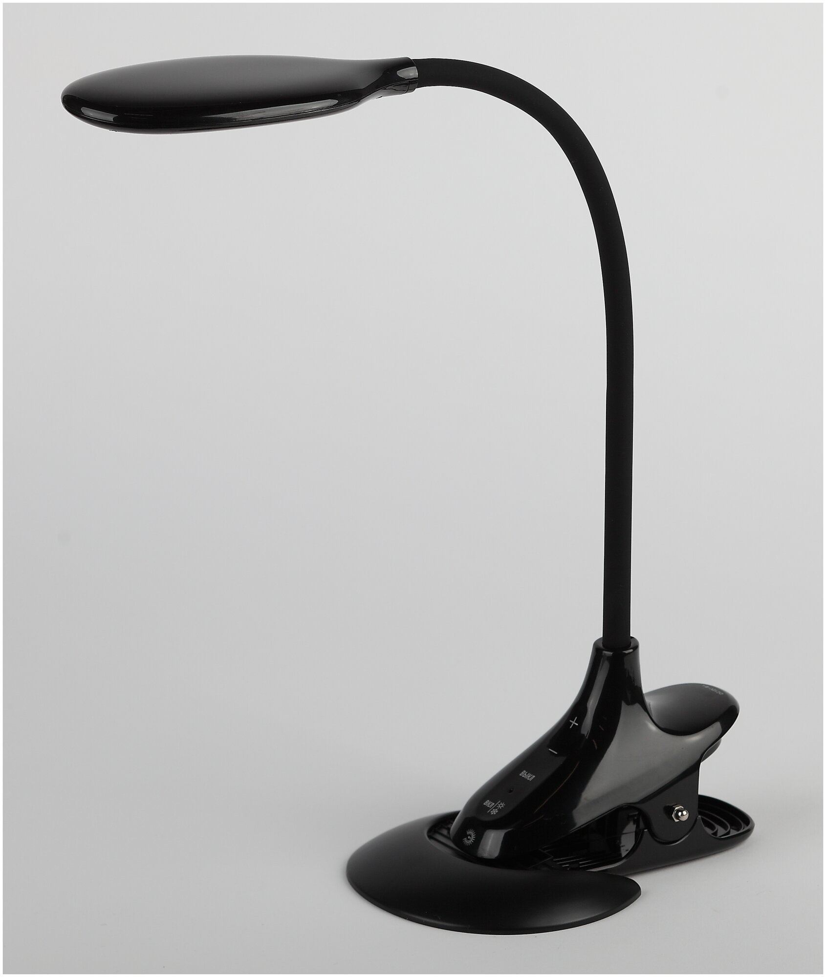| Плюсы: | Регулировка яркости, 3 световых режима, 2 варианта крепления - можно крепить за столешницу или поставить на подставку непосредственно на стол |