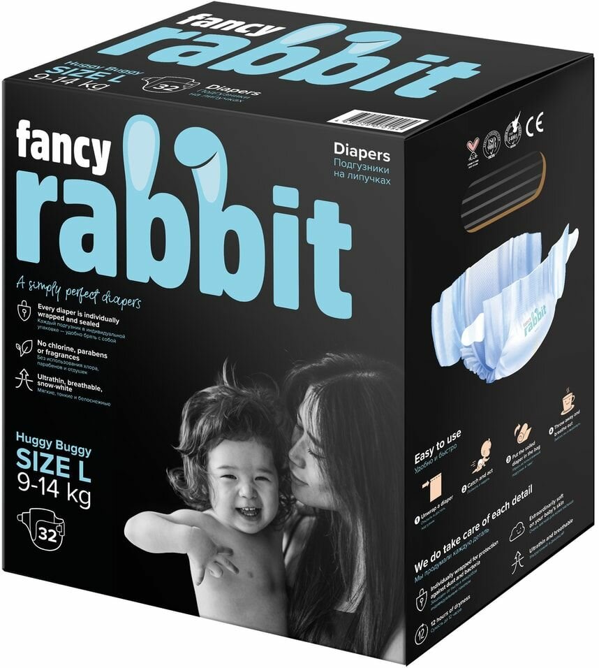 Купить Fancy Rabbit Подгузники на липучках, 9-14 кг, L, 32 шт