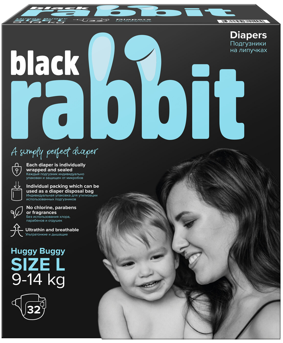Подгузники на липучках Black Rabbit, 9-14 кг, L, 32 шт