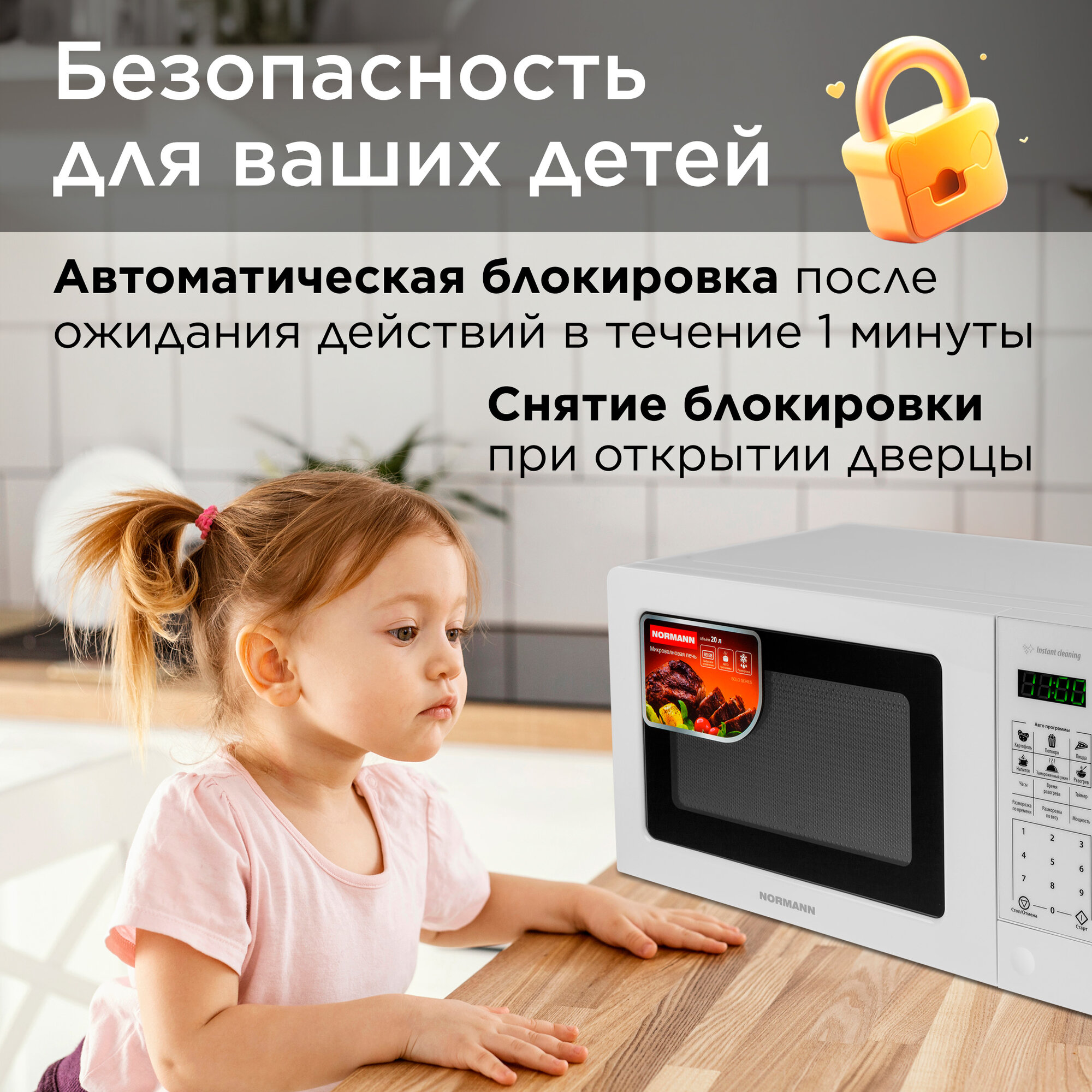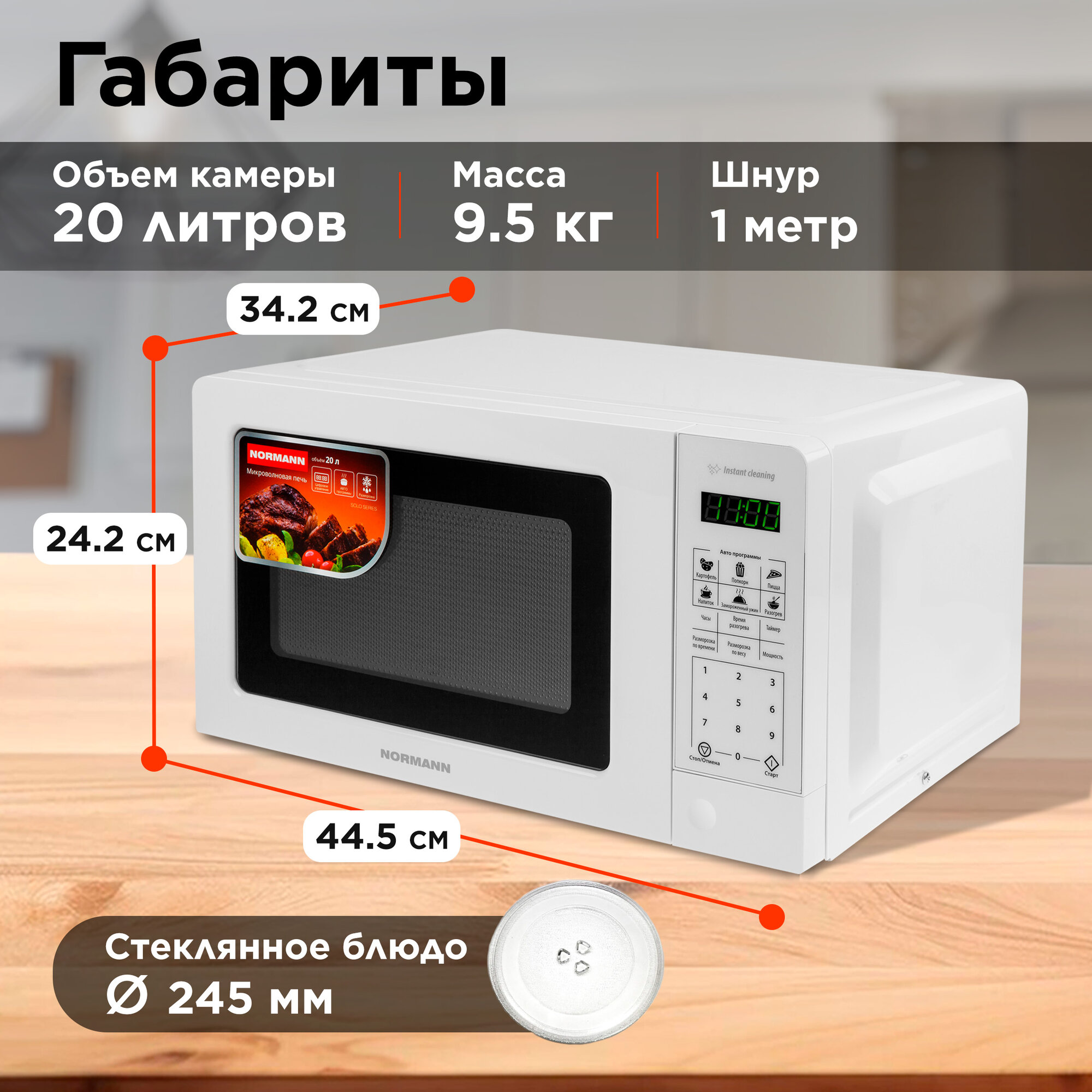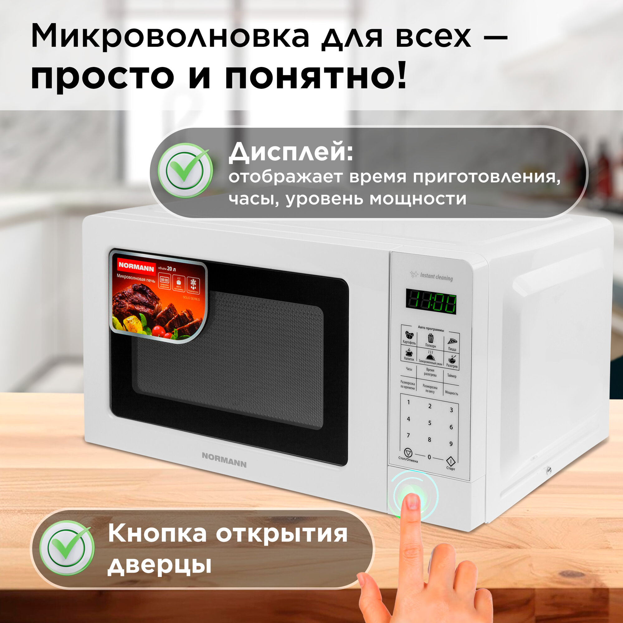 Печь микроволновая NORMANN AMW-918 (СВЧ, соло, 700 Вт, 20 л, электронное управл.) (AMW-918) интересное: