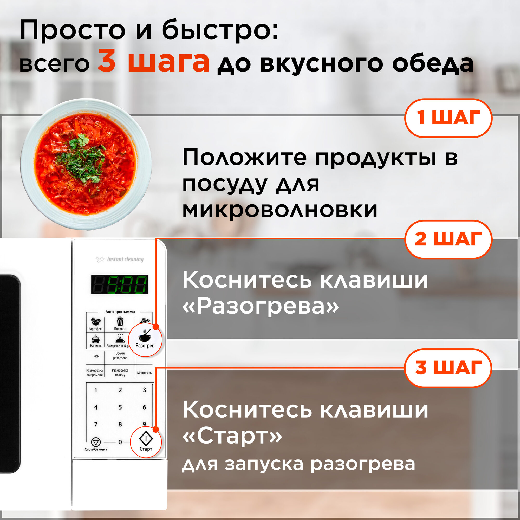 Микроволновая печь FS MWO D 20.10 WH, Сенсорное управление, 6 программ для приготовления, антипригарная эмаль, таймер, блокировка от детей.