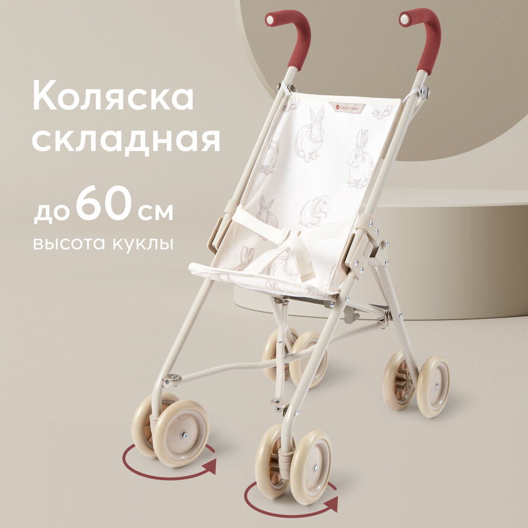 331970, Коляска трость для кукол TWIGLET от Happy Baby, складная прогулочная коляска для игрушек, бежевая с кроликами