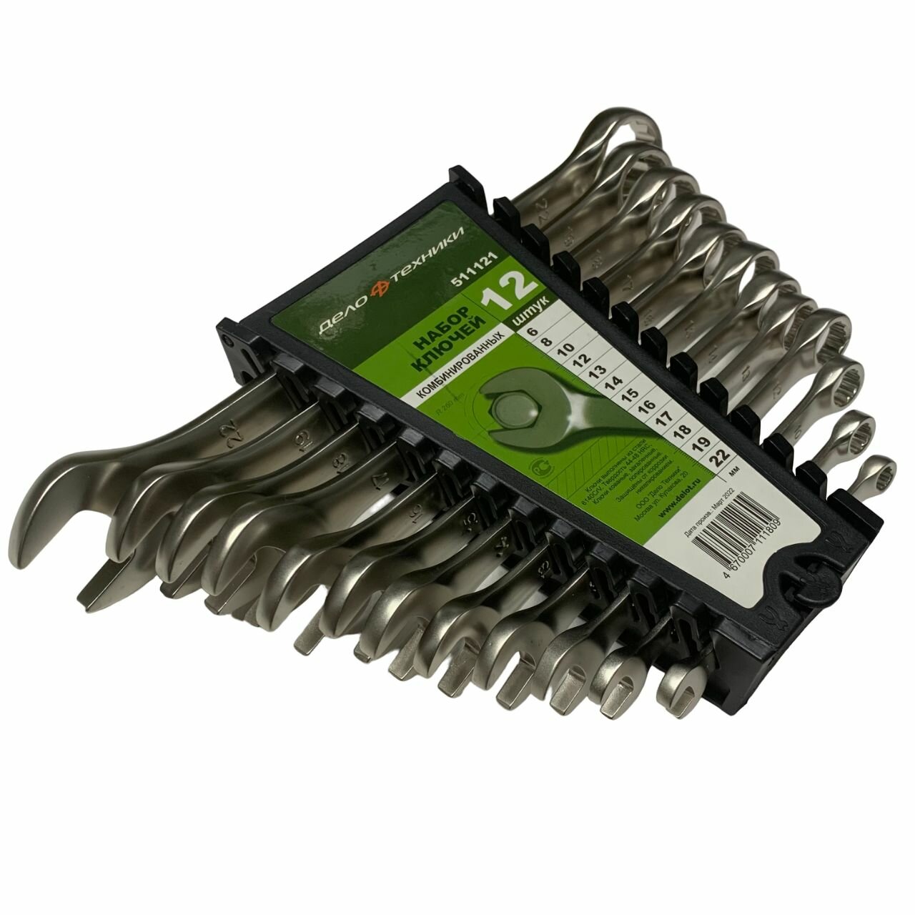 Набор ключей комбинированных - 12 шт. (6 8 10 12 13 14 15 16 17 18 19 22 (евро) пластик. холдер/10/5 дело техники Арт. 511121