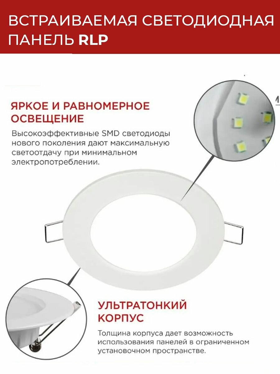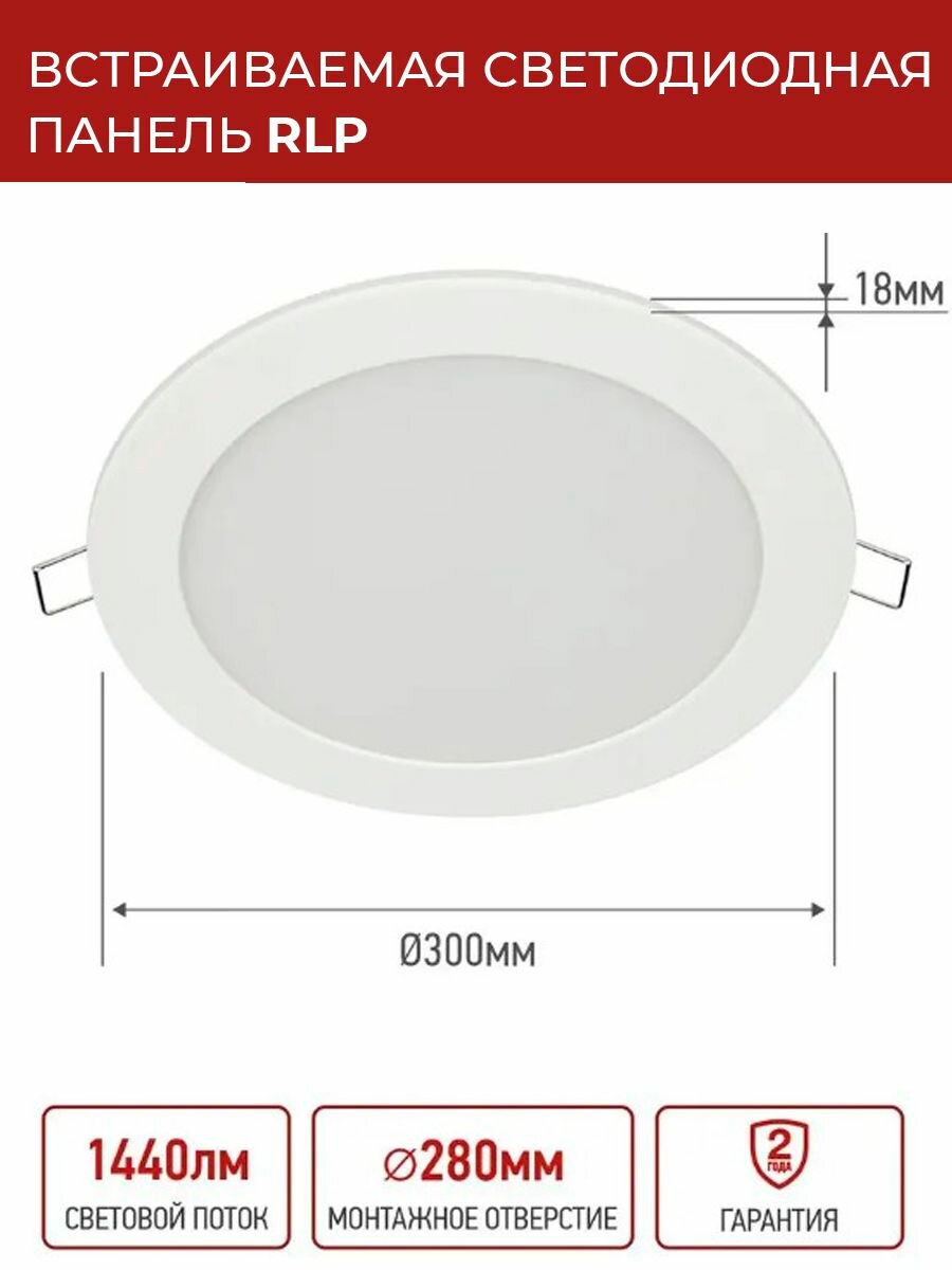 Панель светодиодная встраиваемая круглая RLP 24Вт 230В 6500К 1440Лм 300мм белая IP40 IN HOME