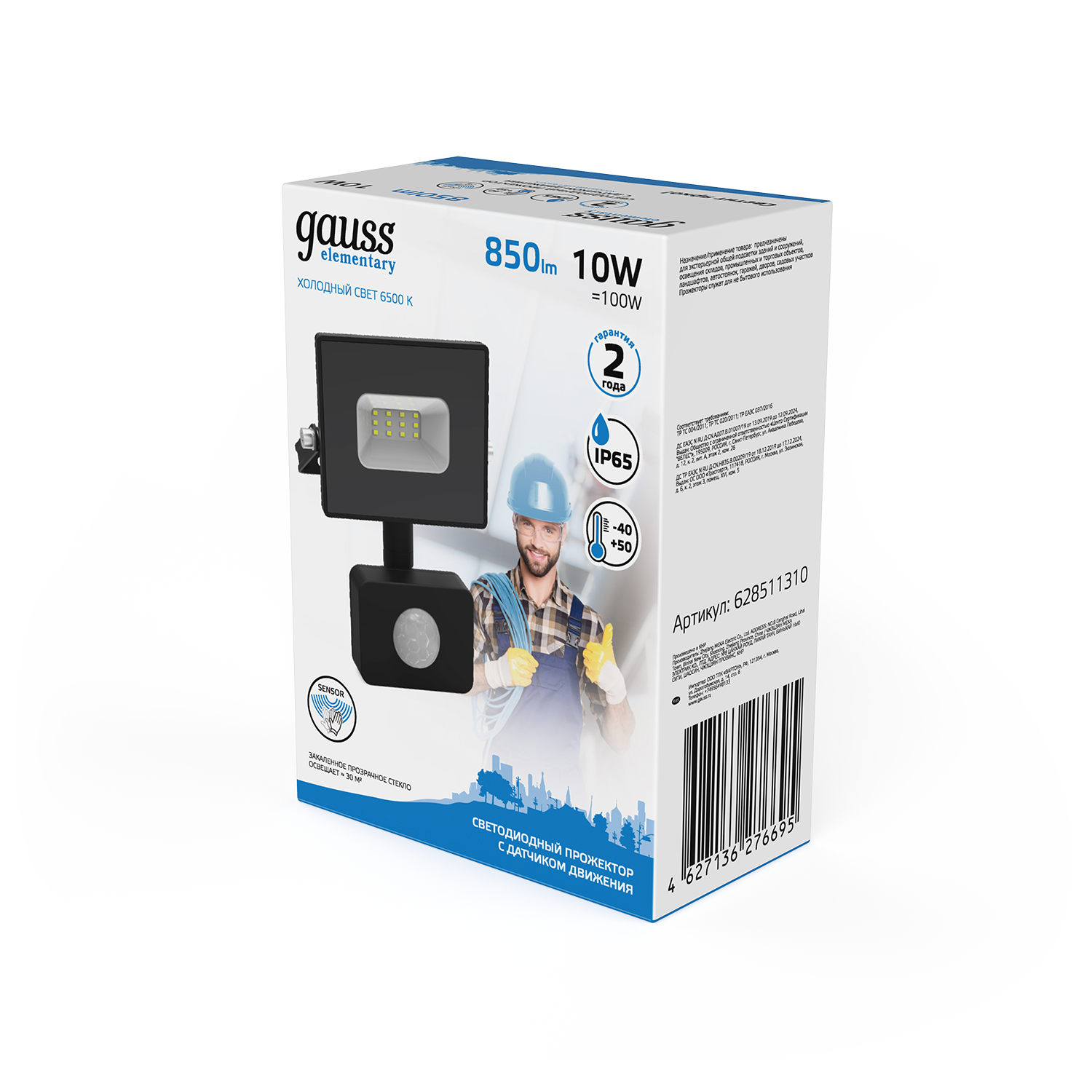 Прожектор GAUSS Elementary 50w 3450lm 6500к 175-265v ip65 черный с датчиком д