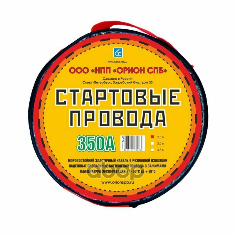 Провода пусковые "Орион" 350 А 2,5м (хладостойкие) в уп. (5038)