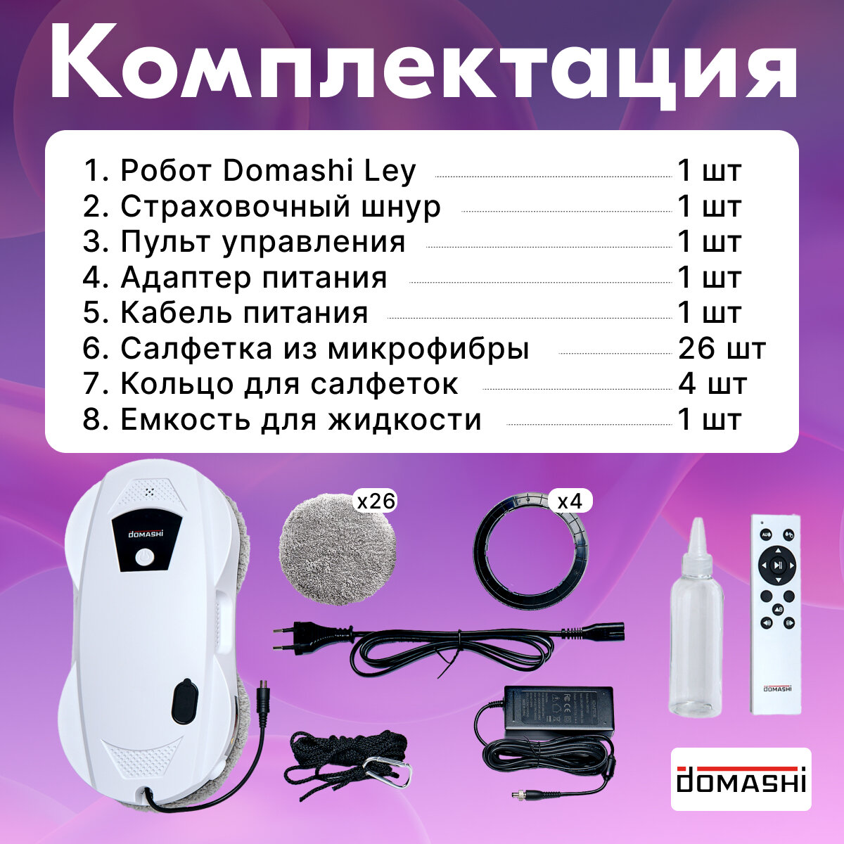 Купить Робот-мойщик окон и стекол DOMASHI Ley с распылителем и 26-ю салфетками