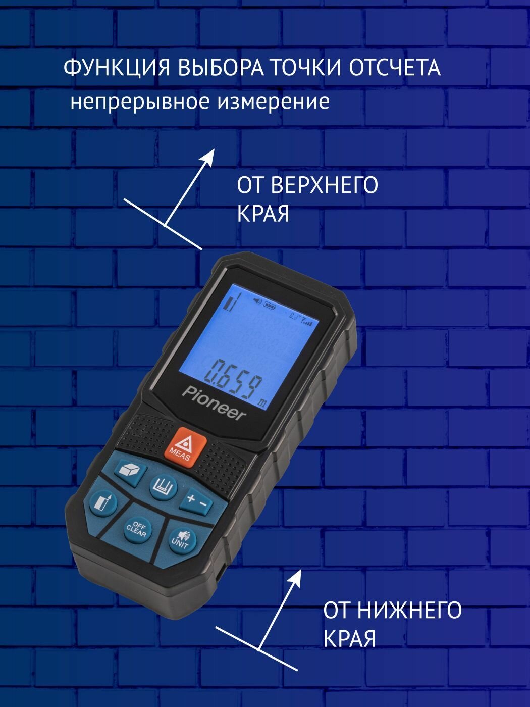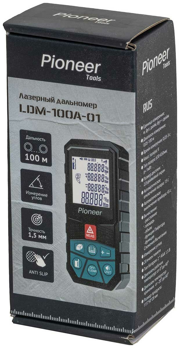 Лазерный дальномер Pioneer LDM-100A-01, до 100 метров, со встроенным уровнем