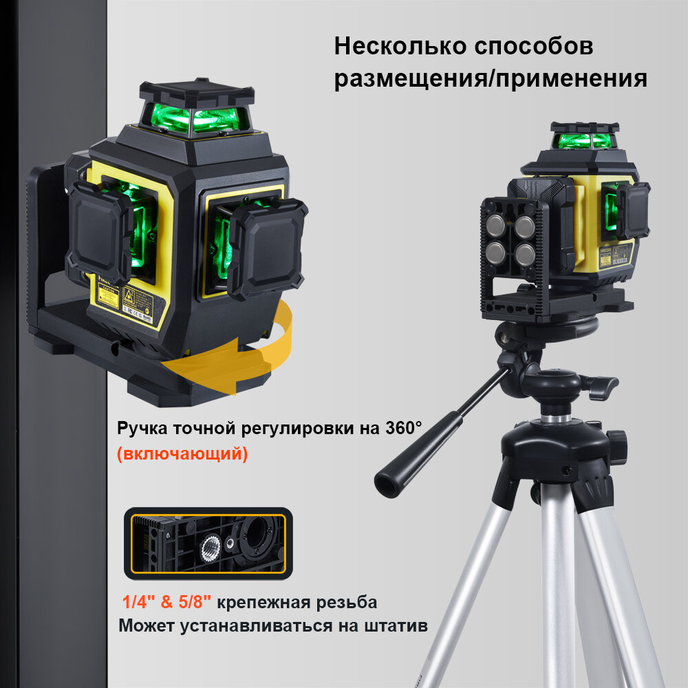 Лазерный уровень/нивелир FIRECORE F95T-XG 12 Линий,Зеленый луч,Тканевый мешок,с встроенным L-образным магнитным кронштейном,и штатив 1 м