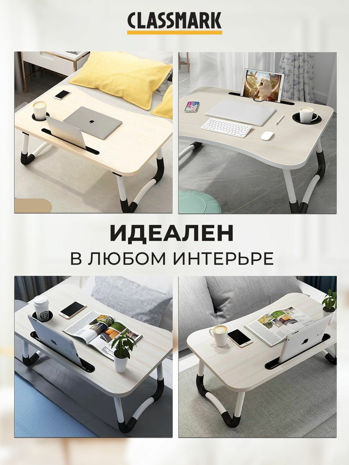 Купить Подставка столик для ноутбука Classmark складной рабочий стол, для завтрака в кровать, работы и отдыха 60 х 40 х 27.5 см, бежевый, белый