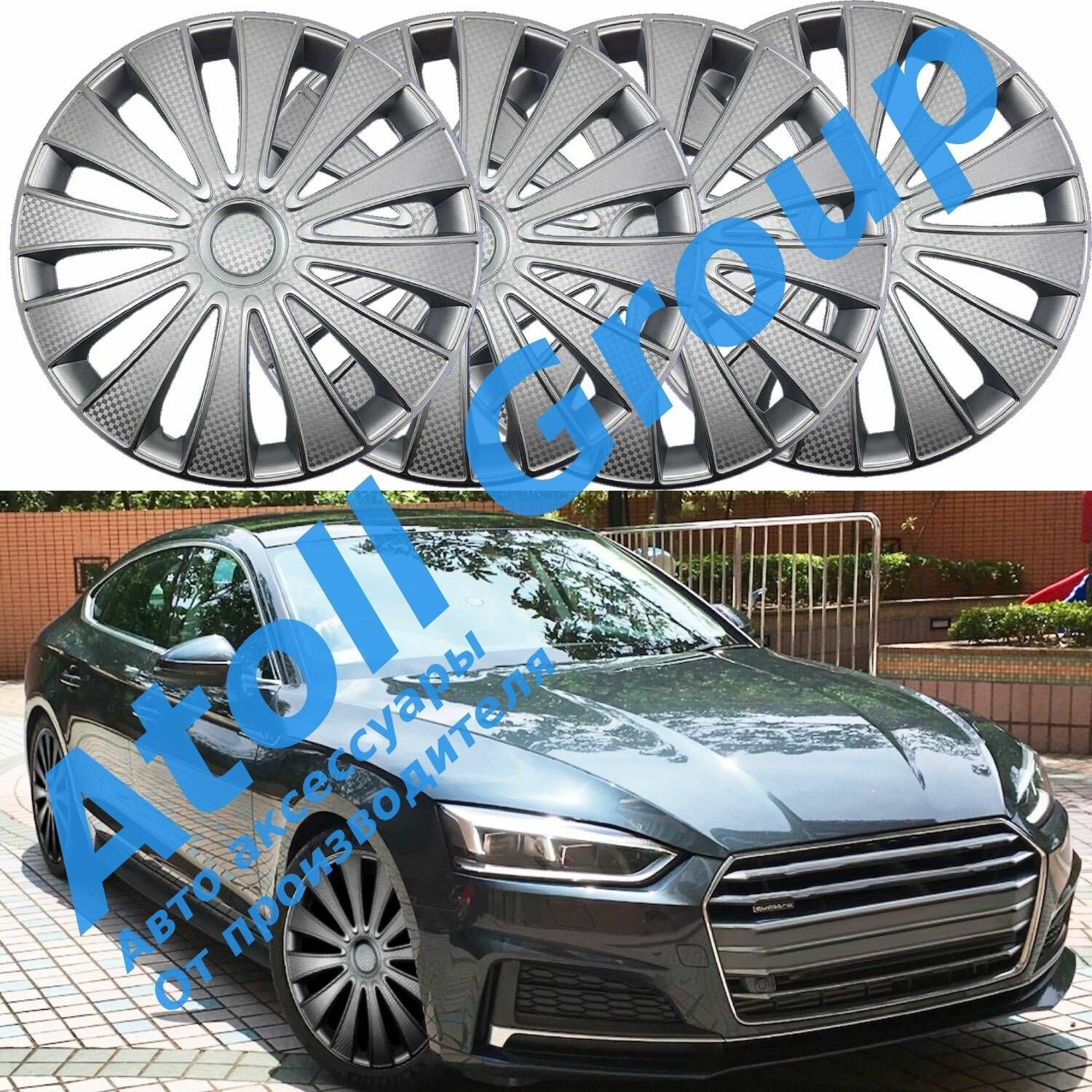 Колпаки R13 4шт на колеса авто карат р13, на диски радиус 13 дюймов, цвет серый, карбон.