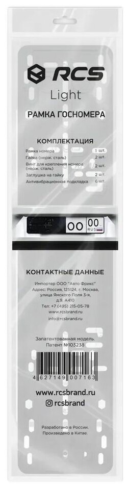 RCS Рамка номерного знака черная Light (R0202) интересное: