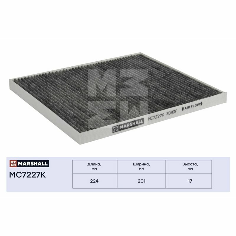 Фильтр салонный угольный MARSHALL MC7227K для Hyundai Accent, Hyundai Tucson, Kia Cerato II, Kia Rio, Kia Sportage // кросс-номер MANN CUK 2336