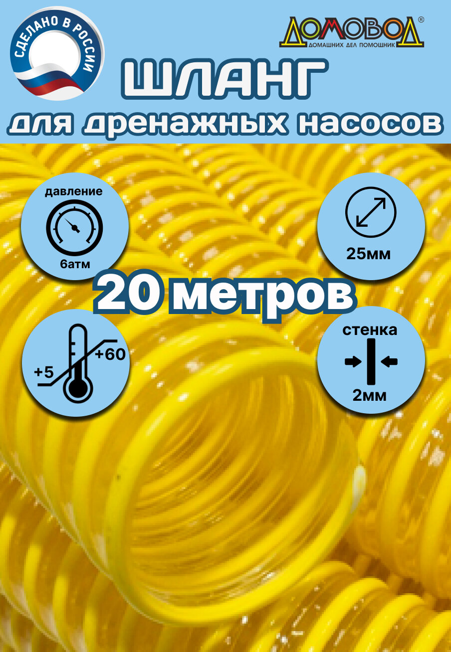 Шланг для дренажного насоса армированный прозрачный из ПВХ d 25 мм ( длина 20 метров ) Tuboflex напорно-всасывающий ДомовоД ШНВЛ25-20