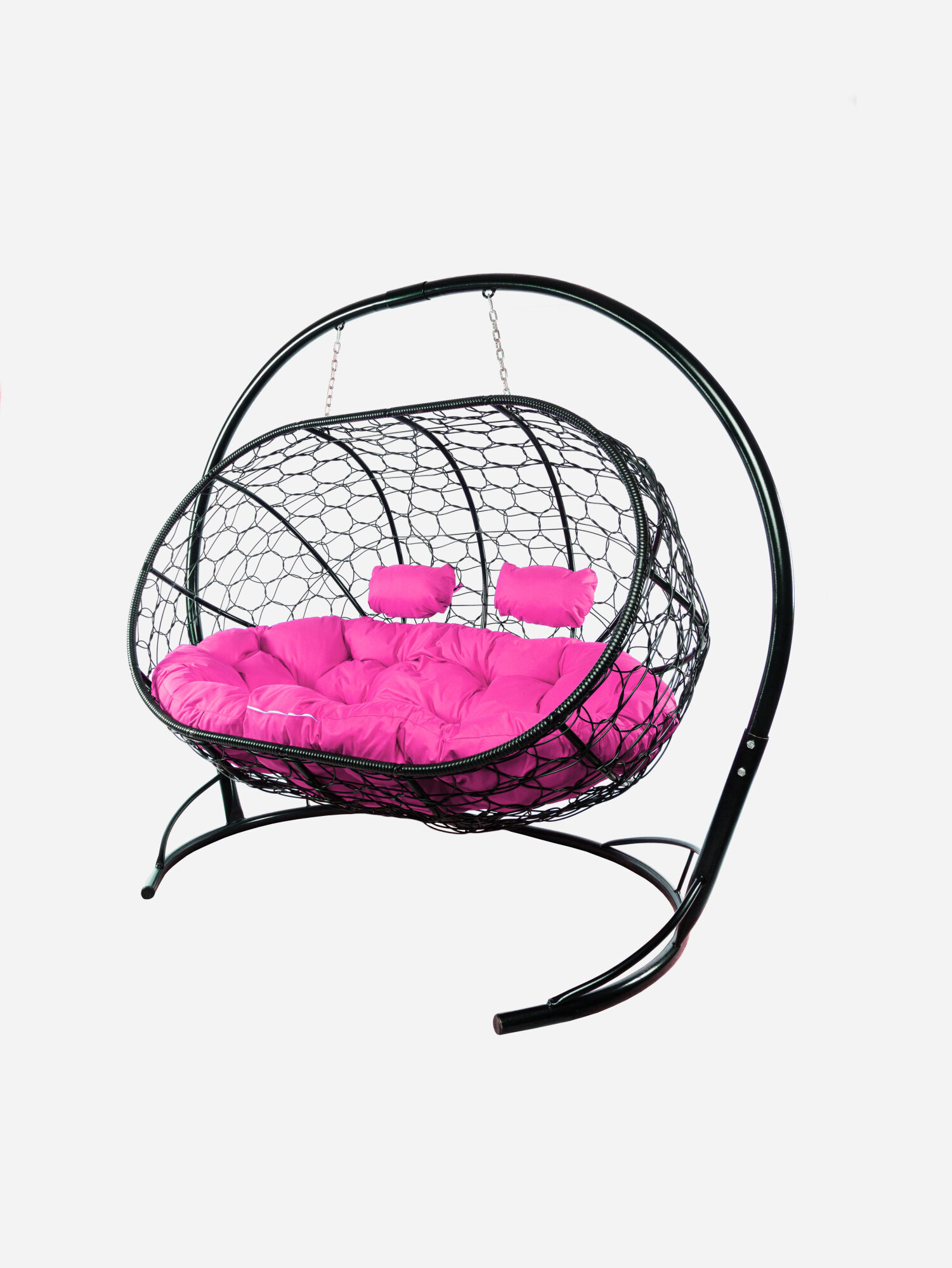 Подвесной диван M-group лежебока с ротангом чёрный розовая подушка интересное: