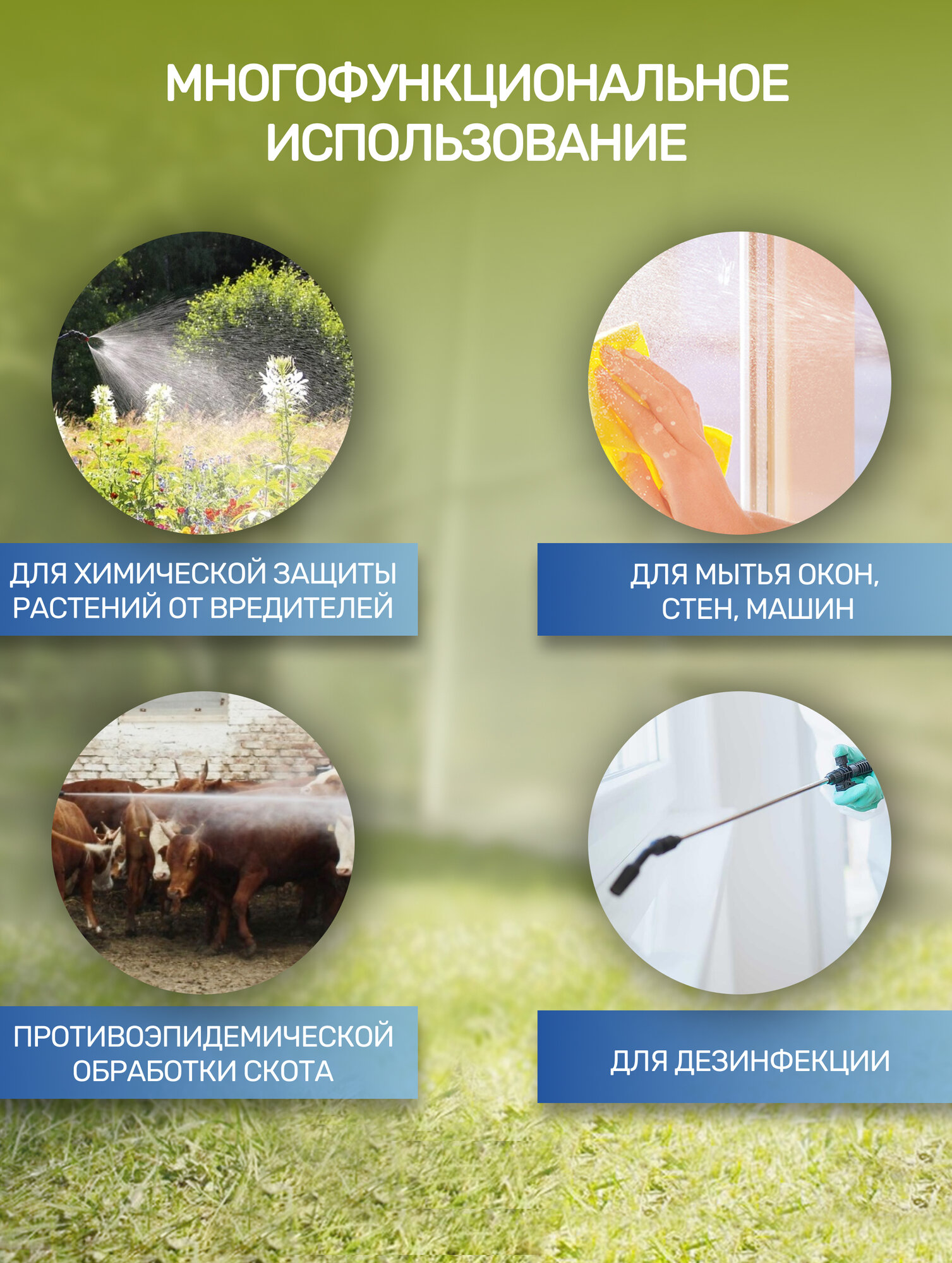 | Комплектация | пластиковая ёмкость 8л, крышка-помпа в сборе, распылитель на удлинительной штанге, шланг, ремень, краткое руководство |