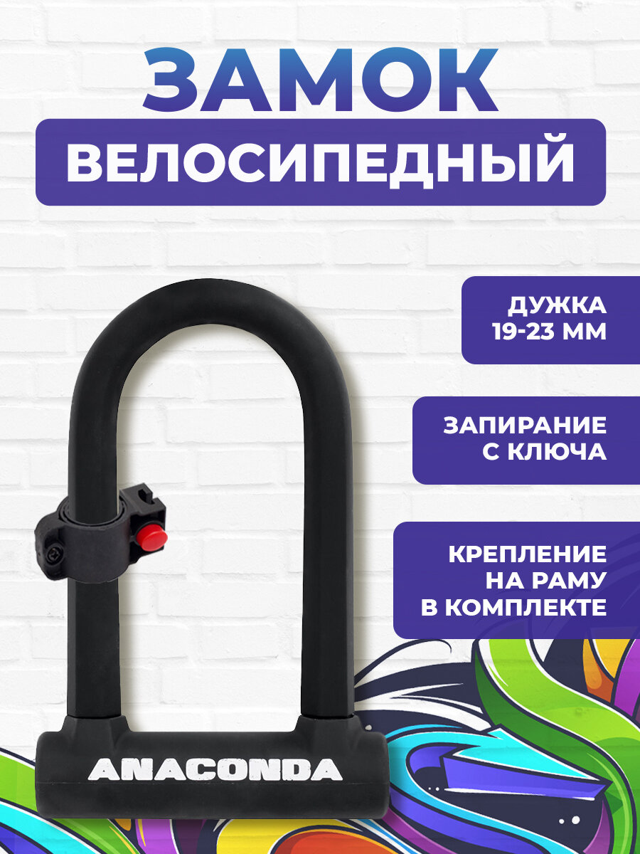 Купить Замок велосипедный всепогодный U-lock авангард ANACONDA Т608 BLACK крепление в комплекте