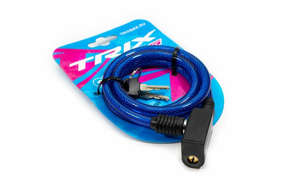 Замок велосипедный TRIX трос стальной, с ключами, 8×1000мм, в пластиковой оболочке, голубой