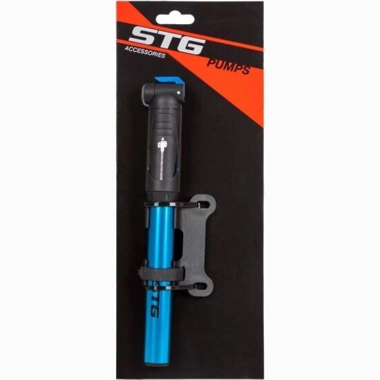 Насос ручной STG Gp-87e, Schrader/Presta, шланг, алюминий, черный с синим .