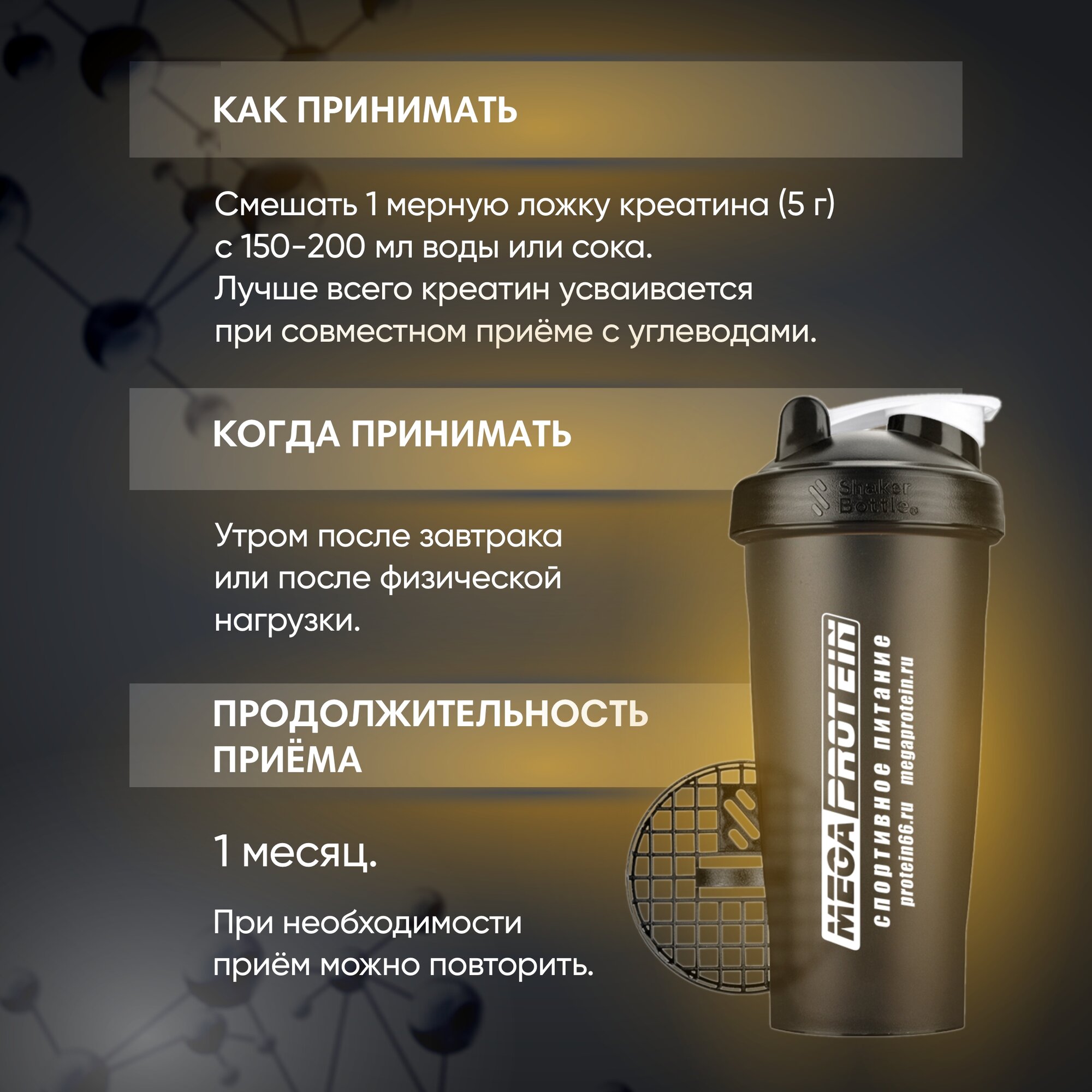 Креатин моногидрат порошок Megaprotein Creatine Monohydrate для, для набора мышечной массы, Без вкуса, 250г/50 порций