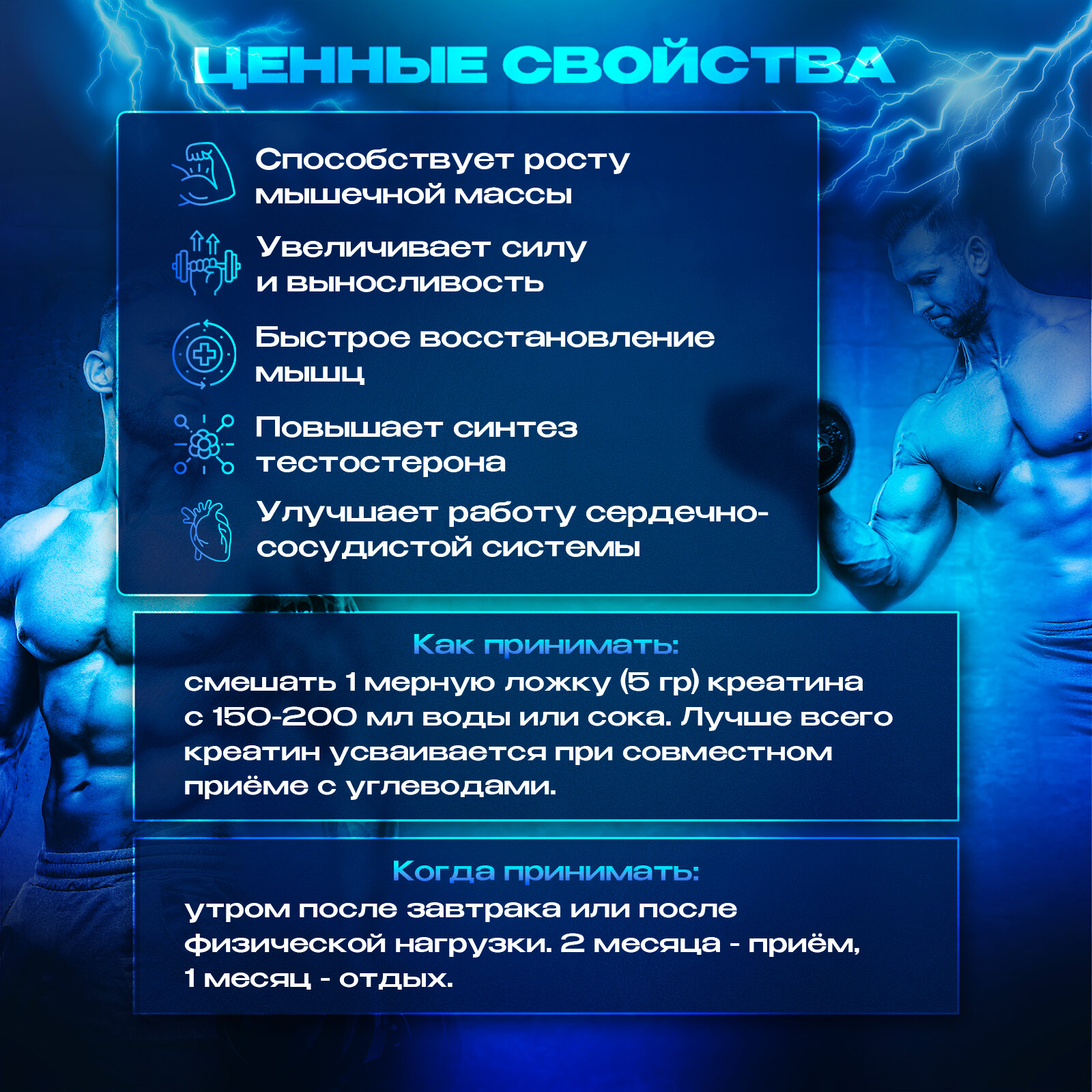 Креатин моногидрат порошок Megaprotein Creatine Monohydrate для, для набора мышечной массы, Без вкуса, 500г/100 порций