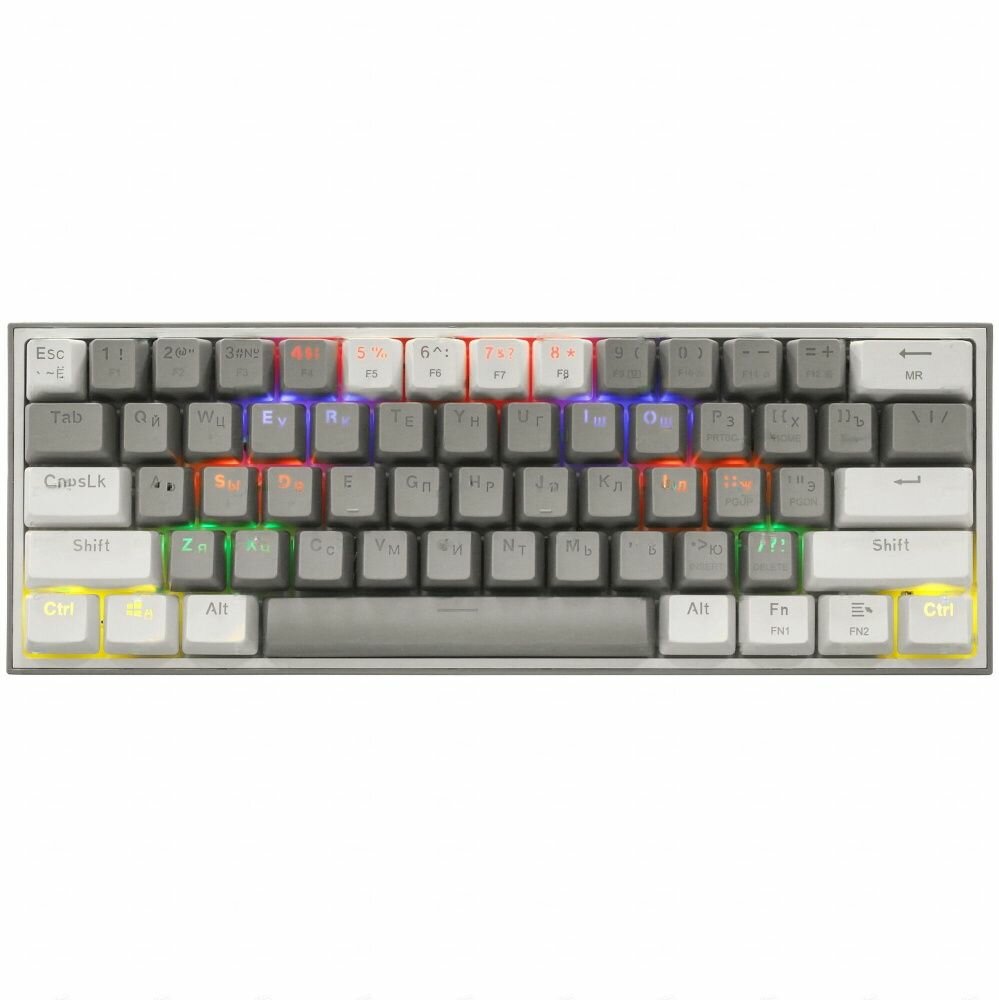 Игровая клавиатура механическая Redragon Fizz Радужная тихая, серо-белая компактная (60%)