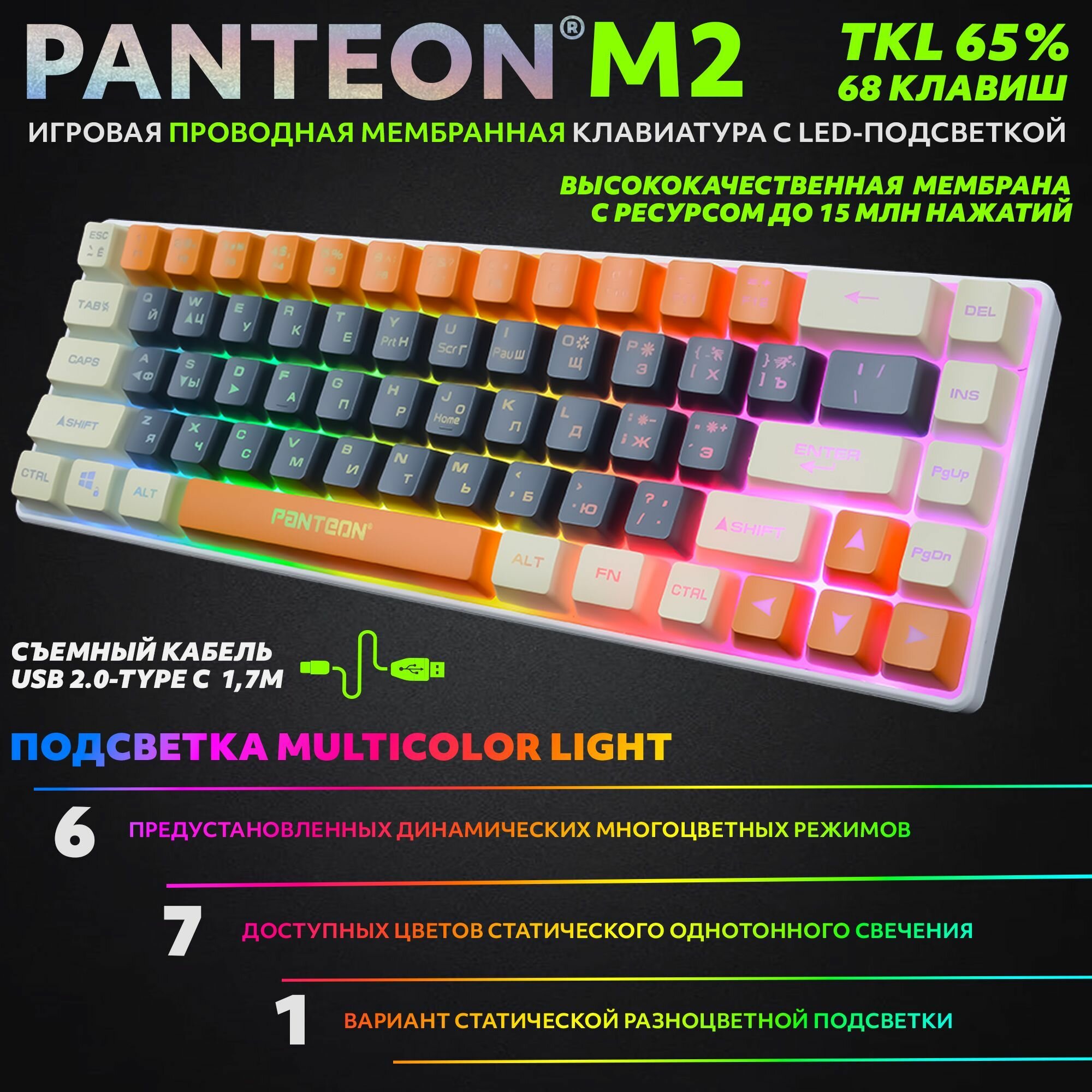 Купить PANTEON M2 Grey-Ivory(02) Игровая мембранная TKL (65%) клавиатура с LED-подсветкой MULTICOLOR (68 кл.,USB), цвет: серый-слоновая кость (02)