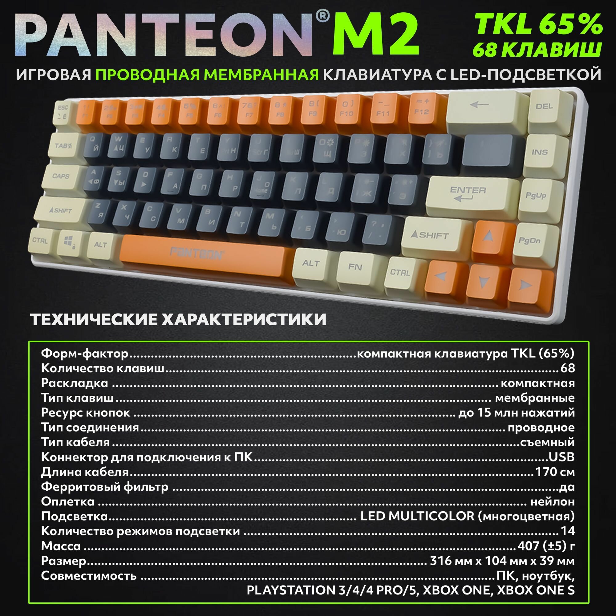 СохранитьPANTEON M2 Grey-Ivory(02) Игровая мембранная TKL (65%) клавиатура с LED-подсветкой MULTICOLOR (68 кл.,USB), цвет: серый-слоновая кость (02) интересное: