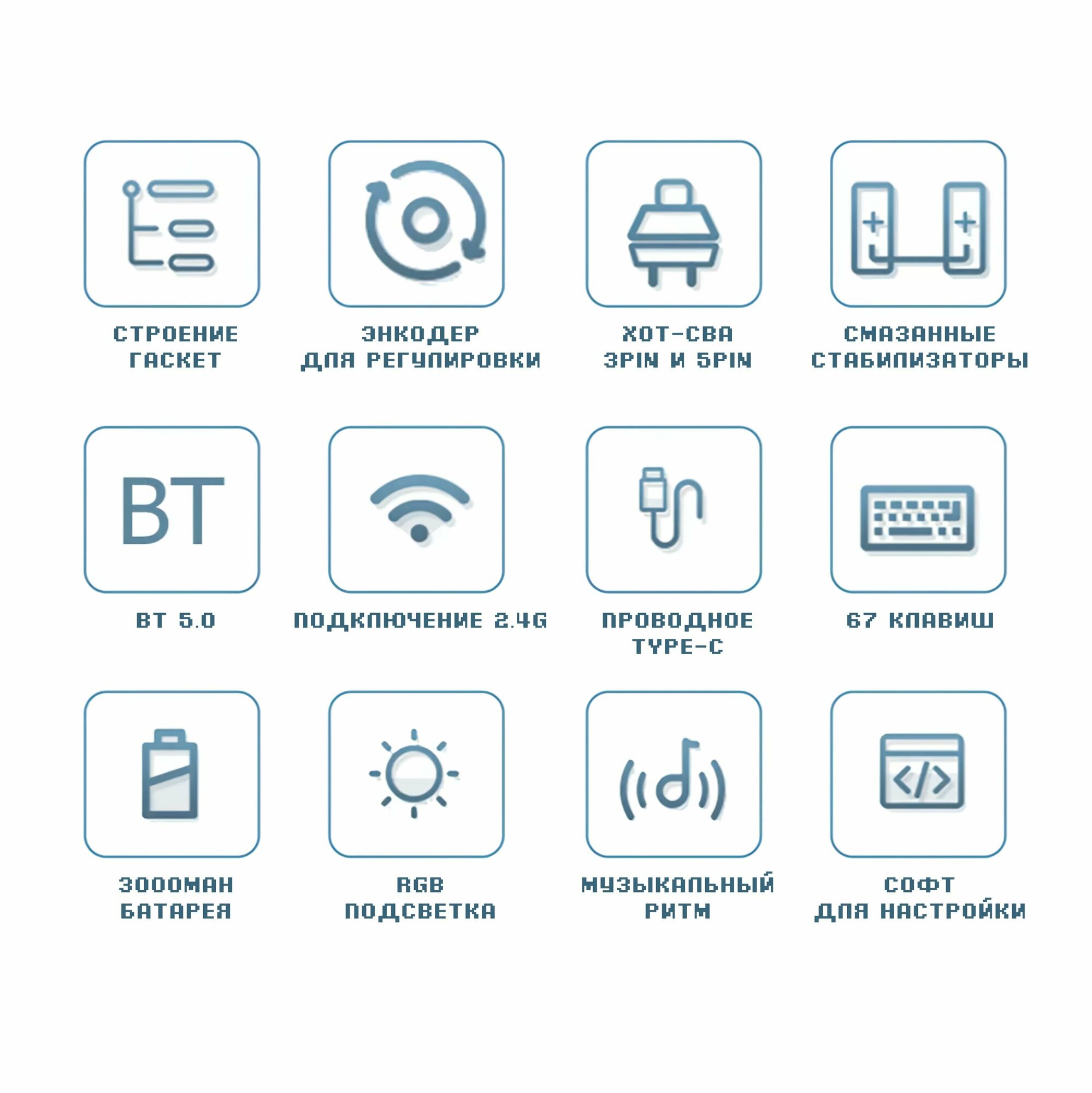 База для сборки механической игровой клавиатуры GMK67 (Blue), 65% Hotswap, RGB, Win Mac, Утилита, 3 MOD(Bluetooth, провод, 2.4g Radio), Синий