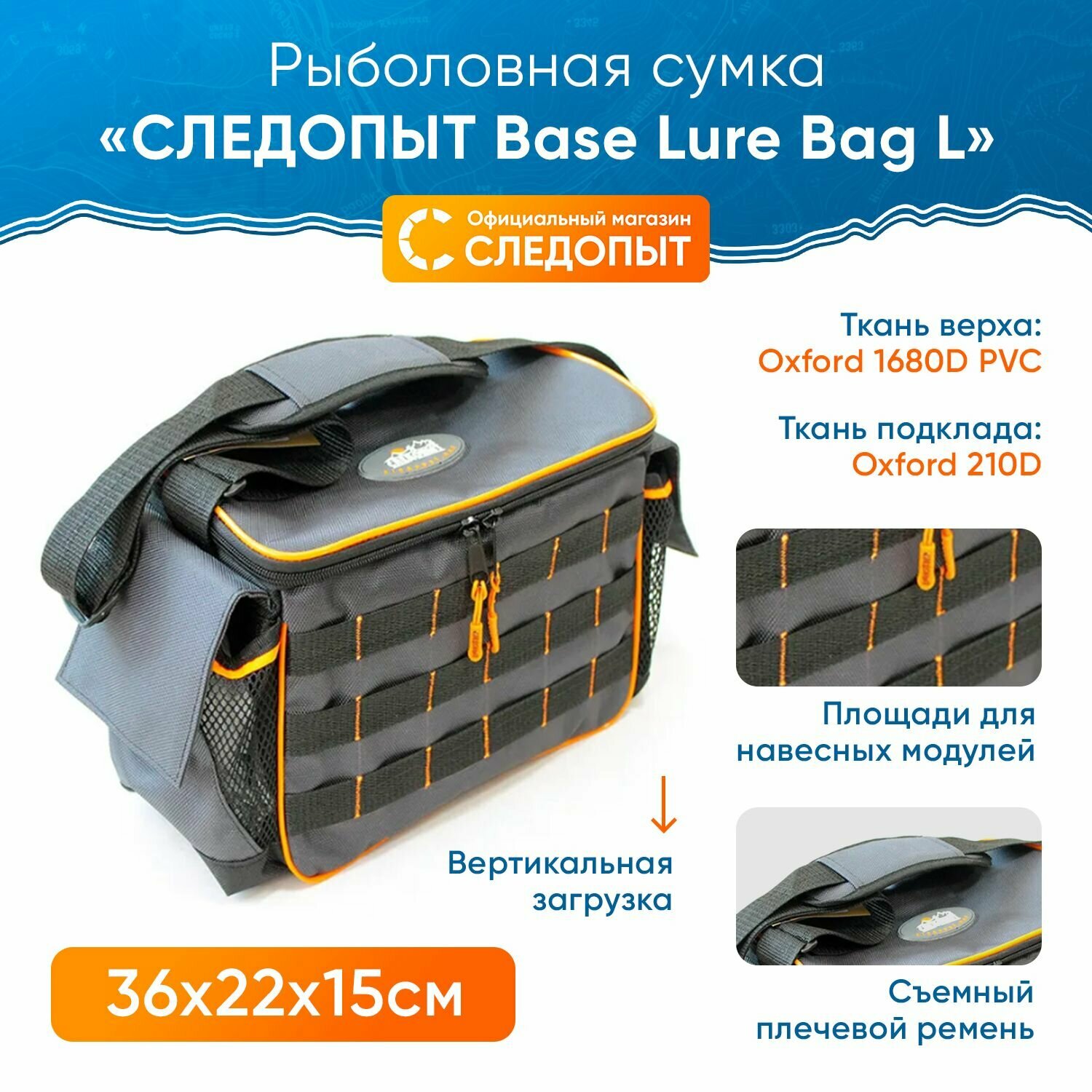 Сумка для рыбалки "следопыт" Base Lure Bag L, 36х22х15 см, цв. серый + 3 коробки Luno 20 интересное:
