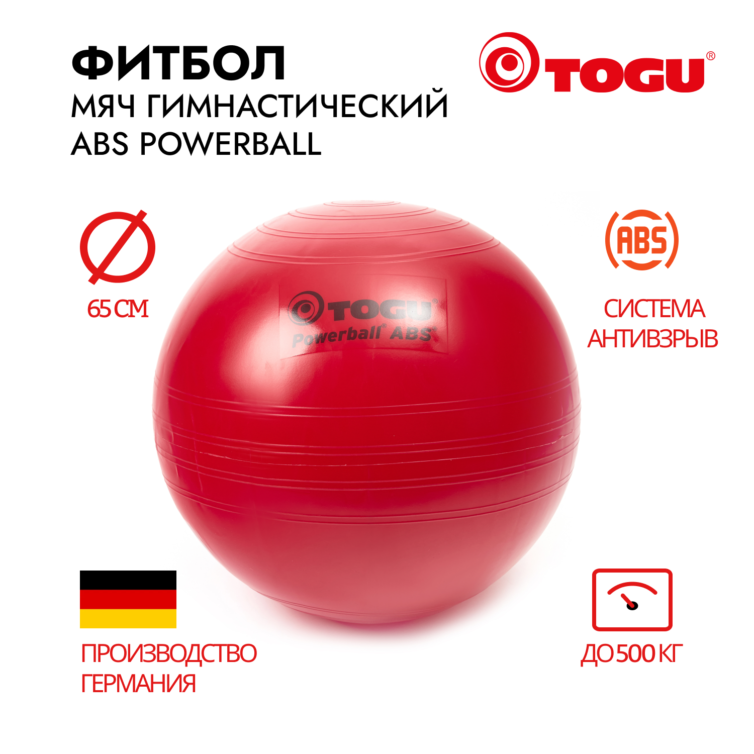 Купить Гимнастический мяч TOGU ABS Powerball 65 см, красный