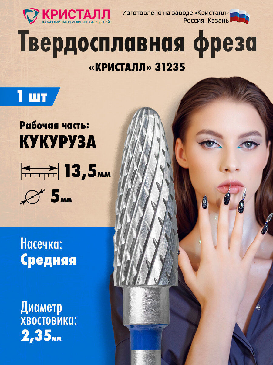 Кристалл, Твердосплавная фреза 31235 (кукуруза, конус), средняя, D5, L13,5