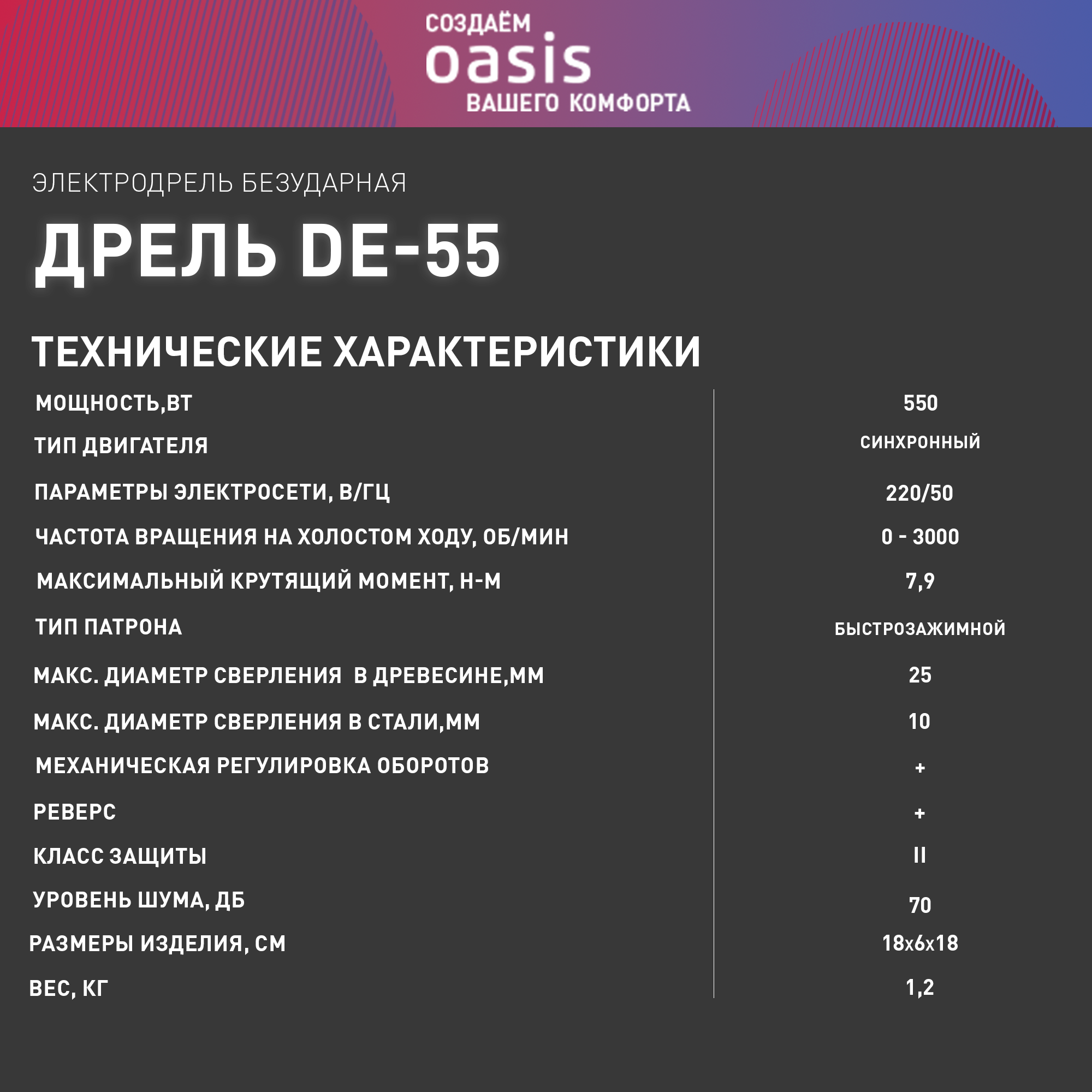 OASIS Электрическая дрель DЕ-55 интересное: