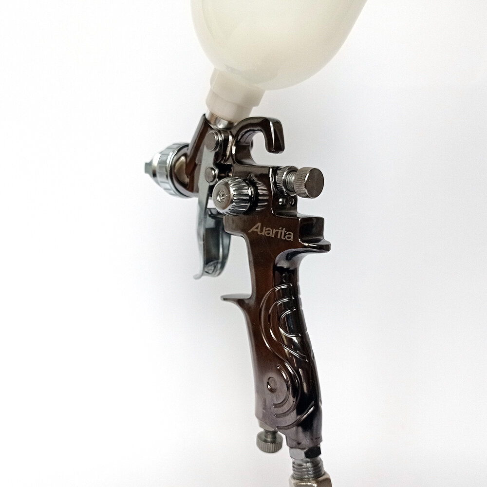 Мини краскопульт Aurita K-350, сопло 0,8 мм, факел до 13 см, хромированный корпус. Два быстросьёма в комплекте