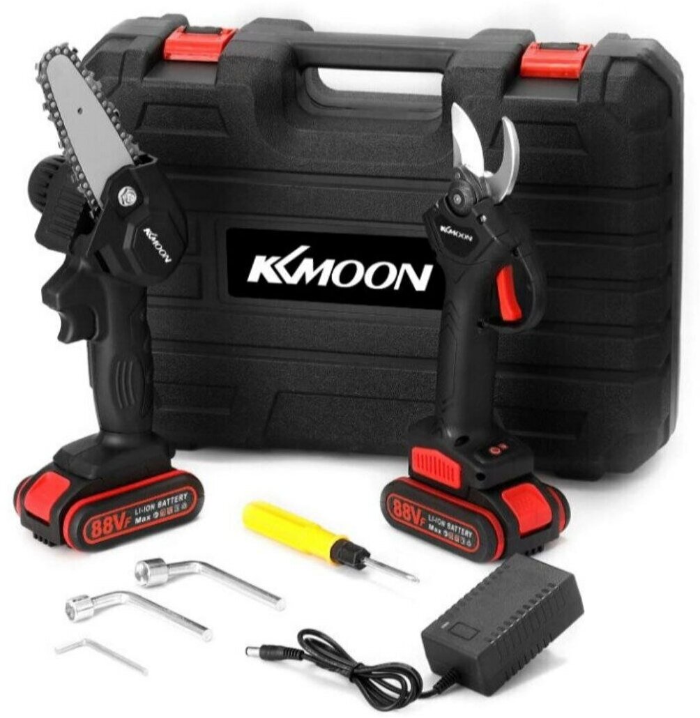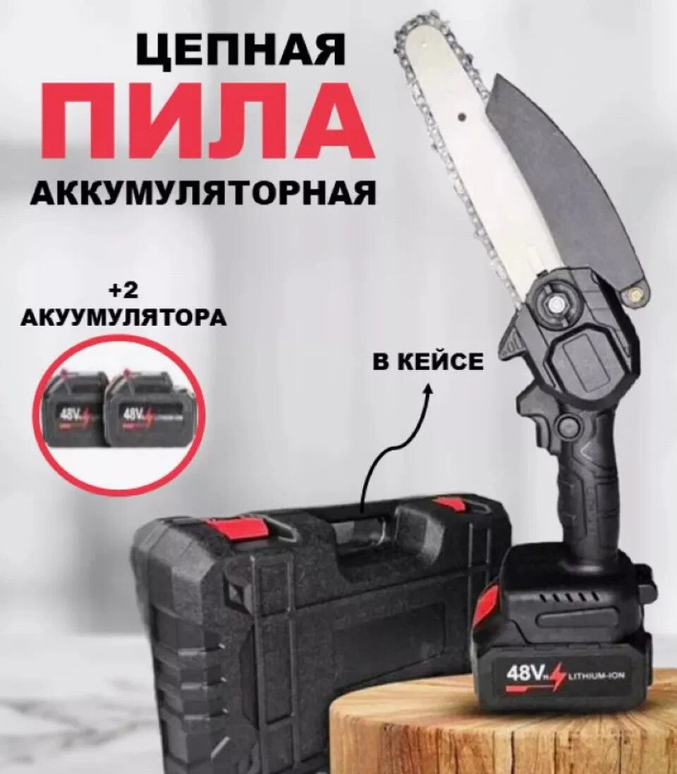 Цепная аккумуляторная пила и секатор в кейсе (2 акб, зарядное) интересное: