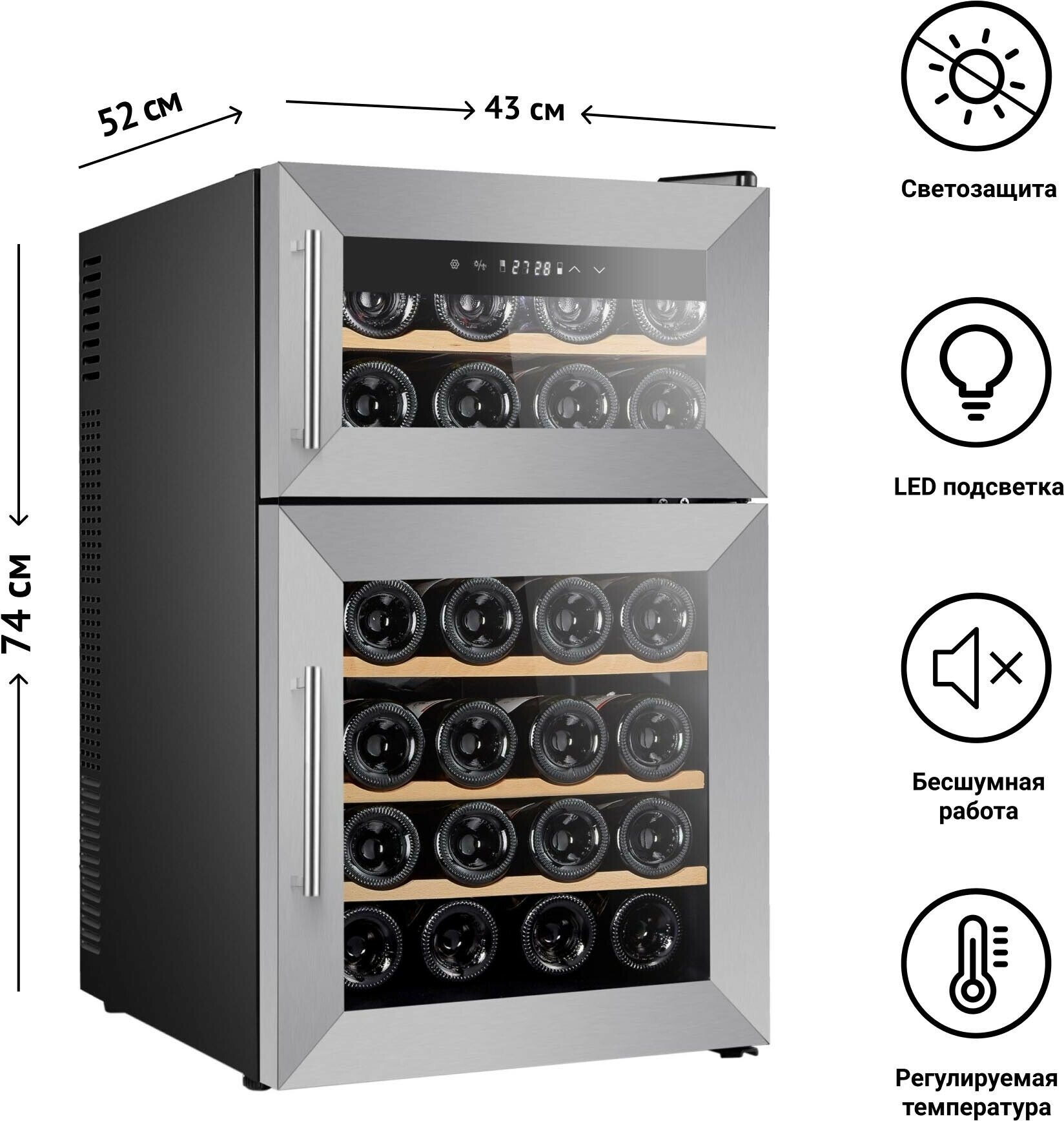 | Тип винного шкафа | двухтемпературный |